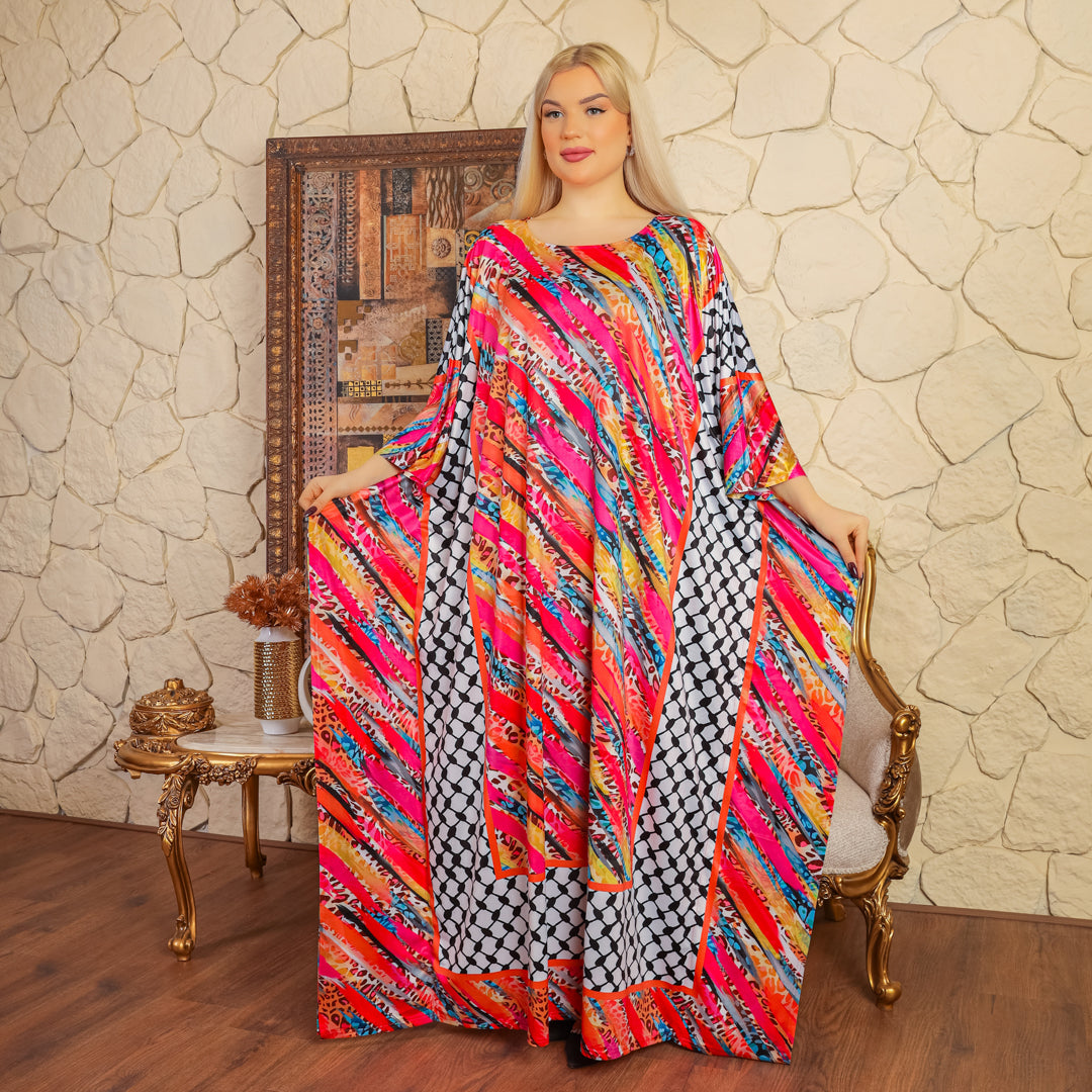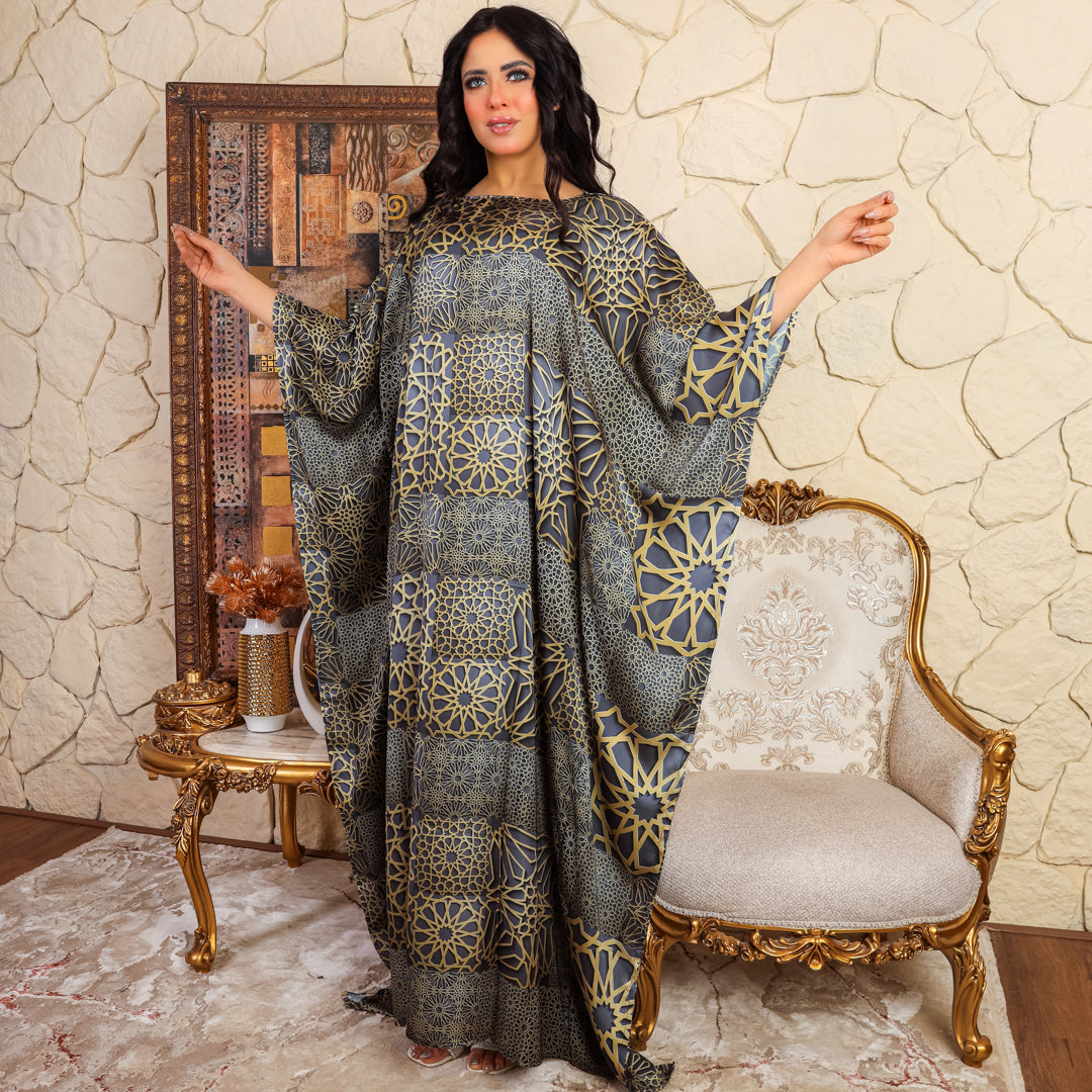 چلابية حرير ستانطباعة ديجيتال من تصميماتنا الخاصةفري سايز تناسب ٧٠ك إلى ١٣٠ك