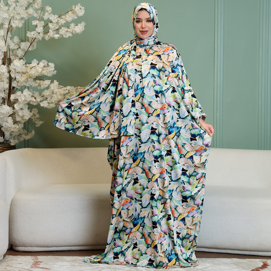 ثوب صلاة حرير ستان مطبوع مع غطاء الرأس