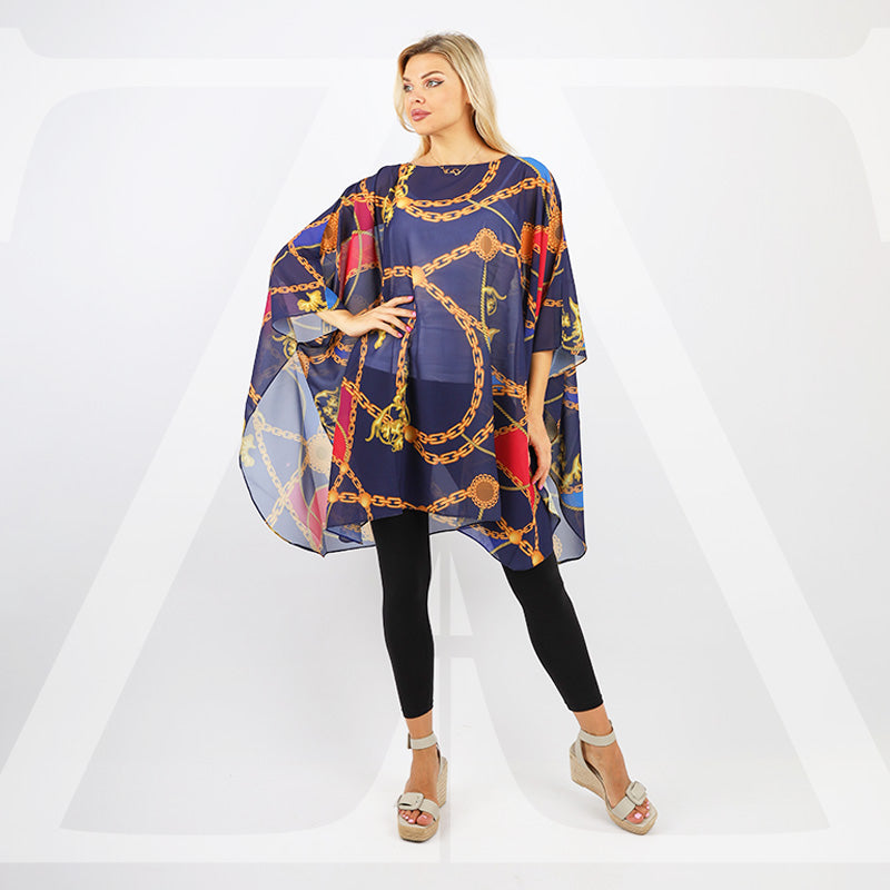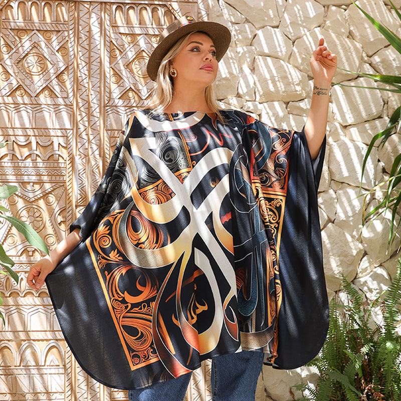 بونشو شيفون بدون بطانة مطبوعة ديجيتال من تصميماتنا الخاصة فري سايز يناسب ٧٠ك إلى ١٣٠ك