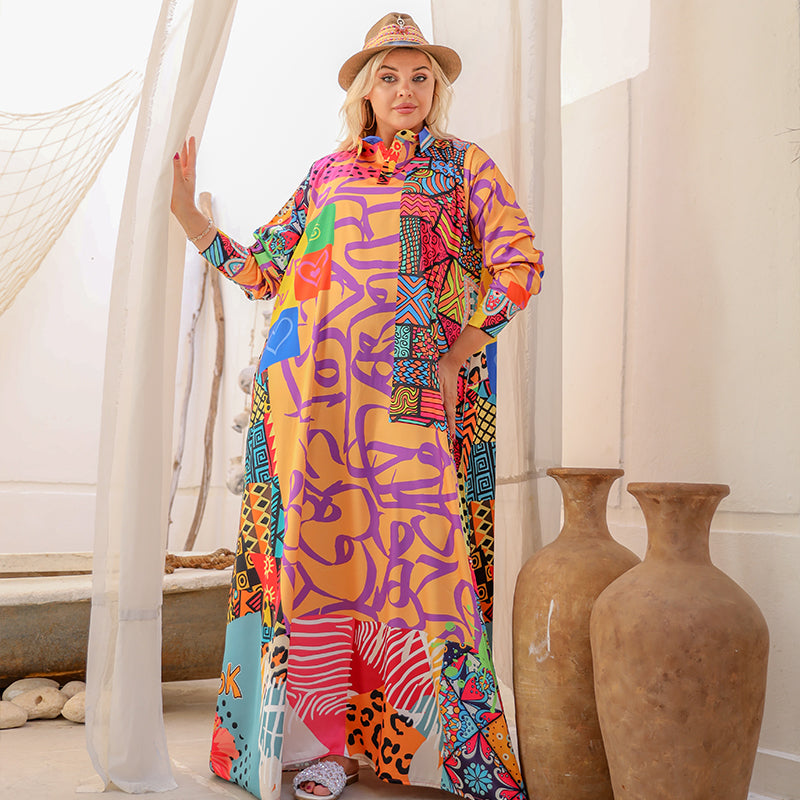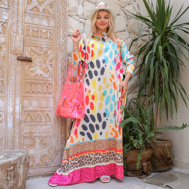 دريس حرير ستان أرماني بأكمام طباعة ديجيتال من تصميماتنا الخاصة فري سايز يناسب ٧٠ك إلى...
