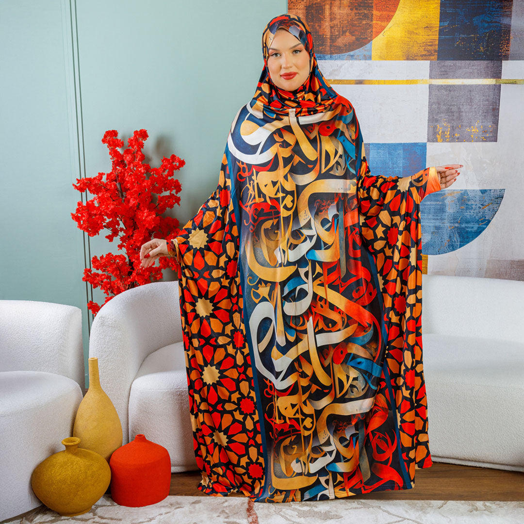 Practical Kuwaiti Jersey prayer dress with headscarf- Printed