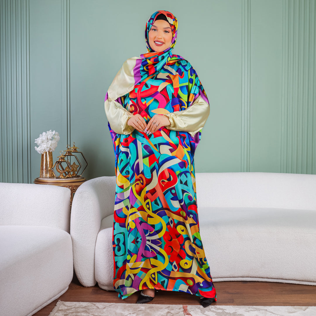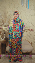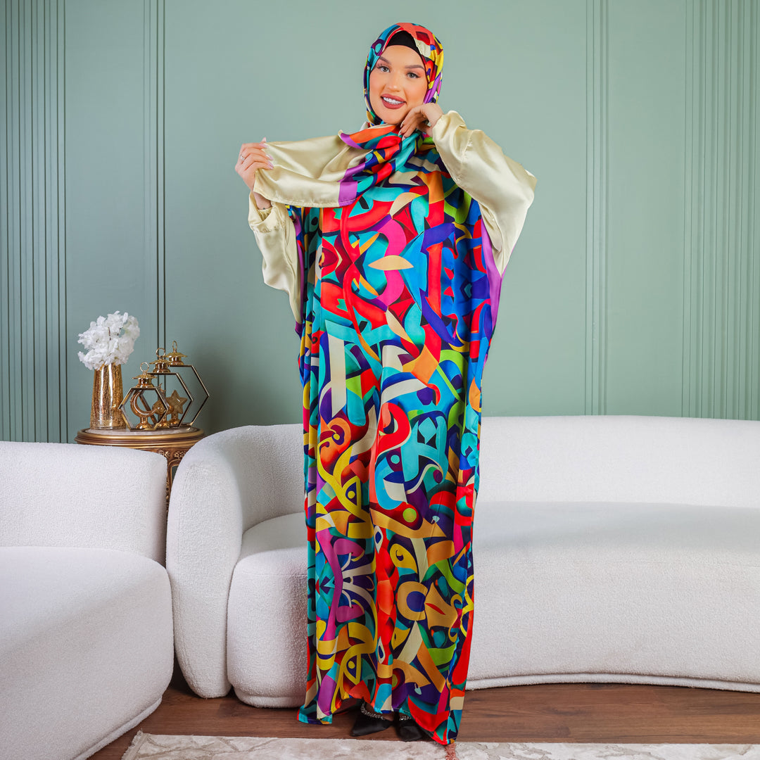 Practical Silky Satin prayer dress (Isdal) (digital print our own designs) Free Size fits 70kg to 90kg With a connected veil