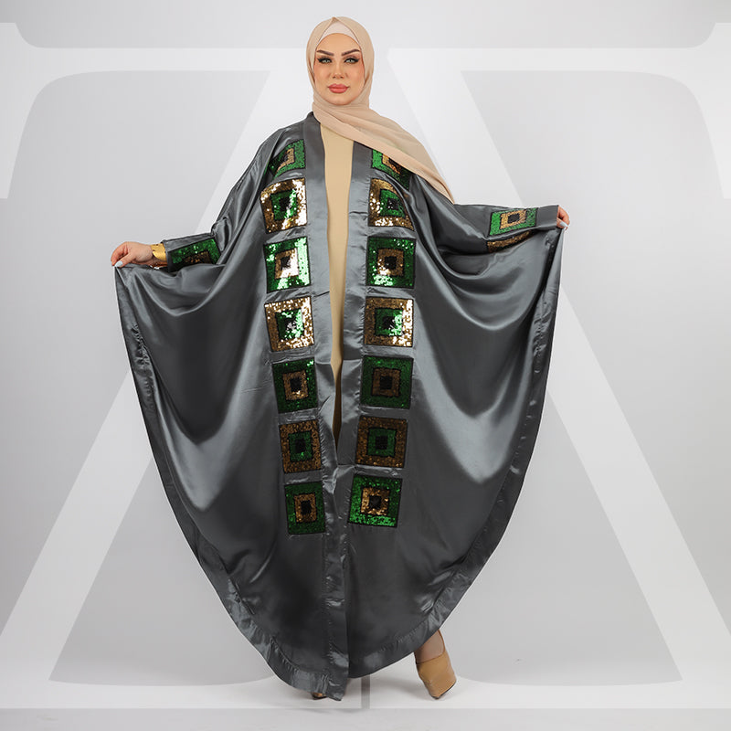 Satin Silk Kaftan - Soft embroidered and decorated with sequin embroidery appliqués
