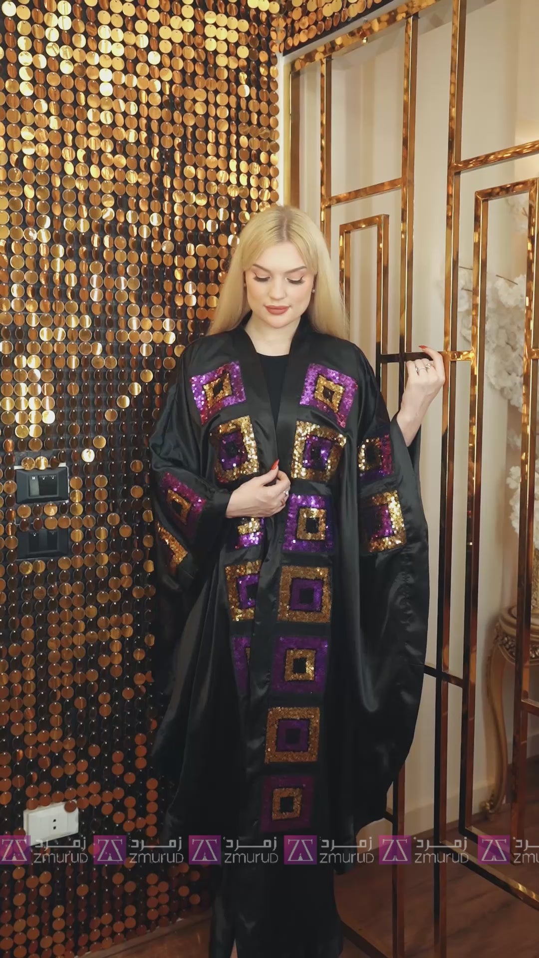 Satin Silk Kaftan - Soft embroidered and decorated with sequin embroidery appliqués