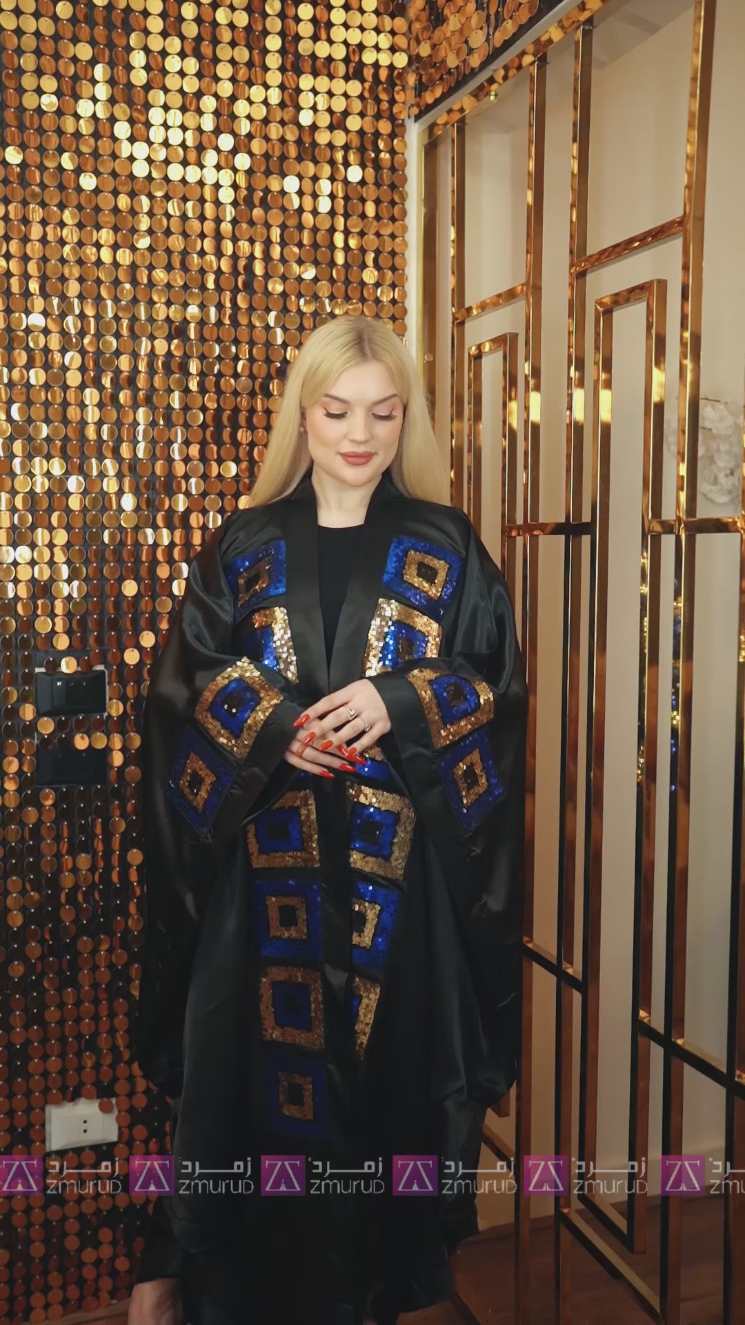 Satin Silk Kaftan - Soft embroidered and decorated with sequin embroidery appliqués