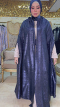 This elegant Soirée gown is adorned with shiny crystal embellishments, paired with a matching belt to highlight a central arabic design.