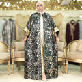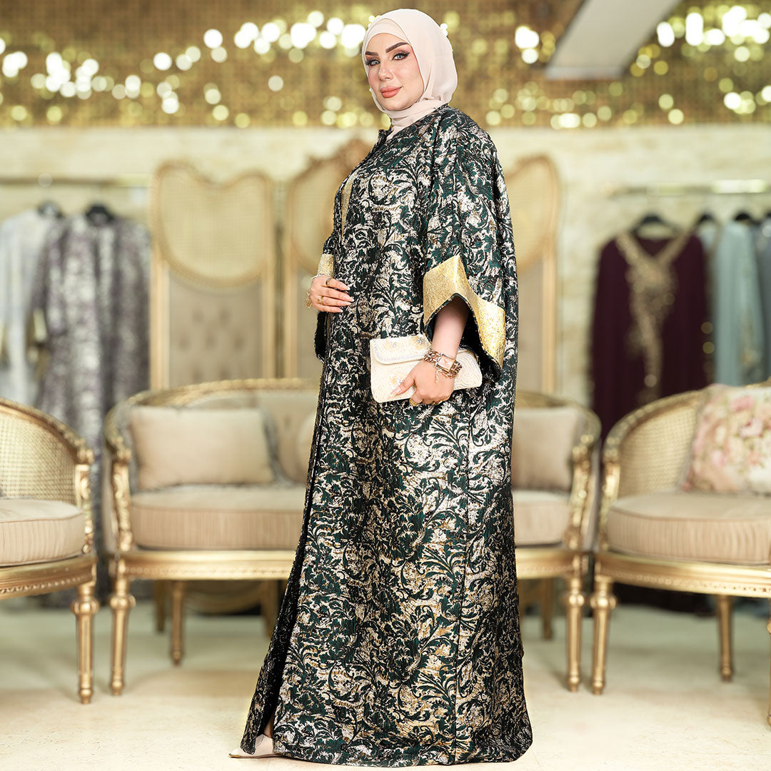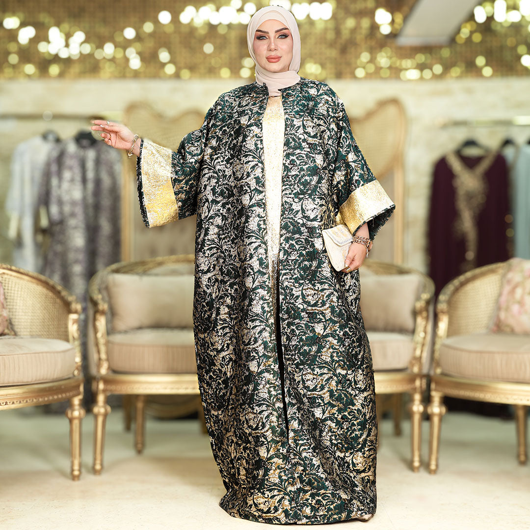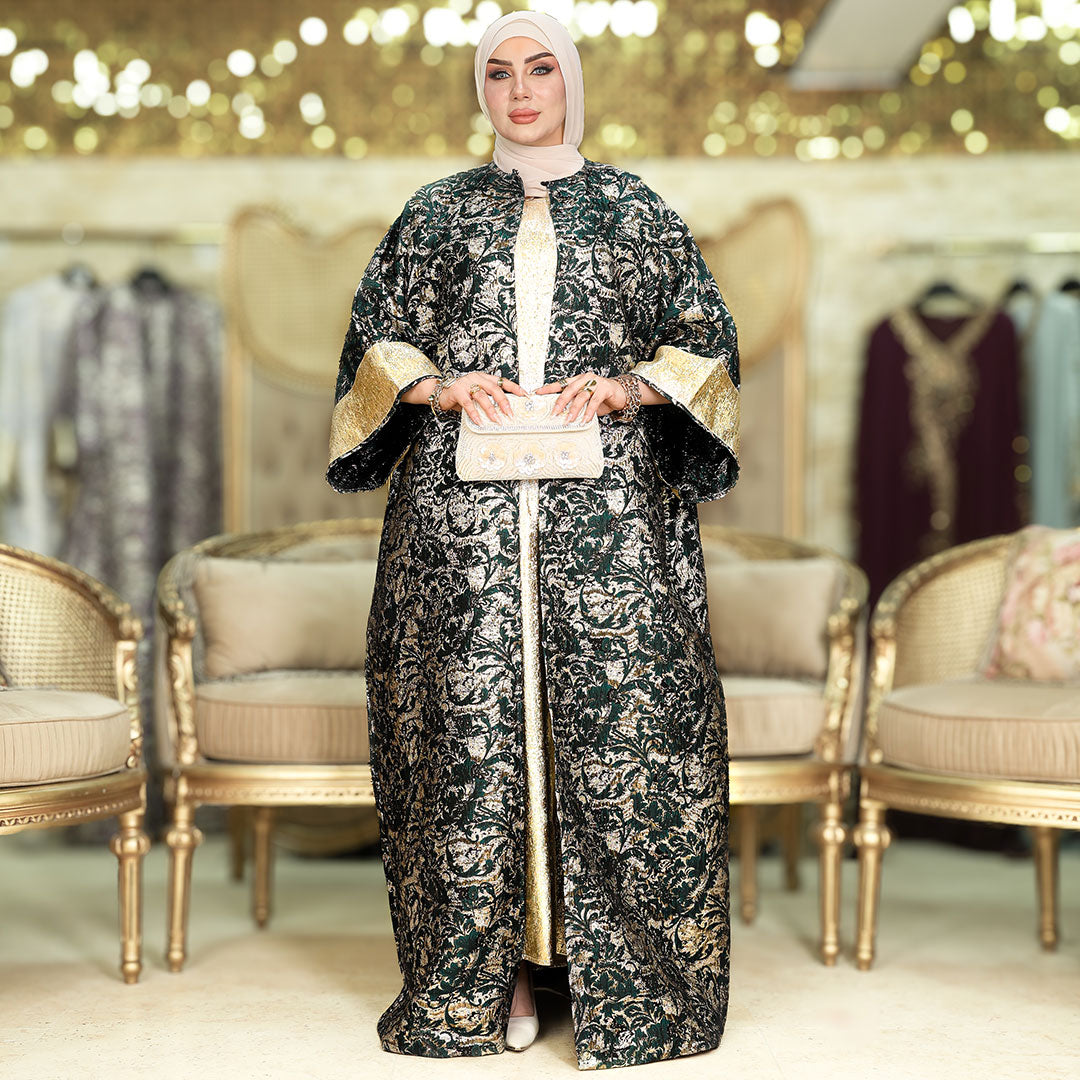 This elegant two-piece Brocade Bahraini Kaftan Set Shiny with basic gold brocade