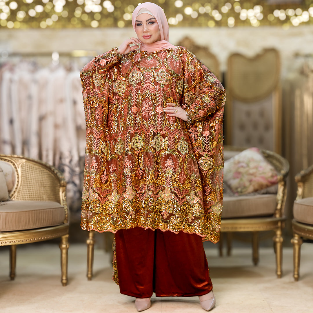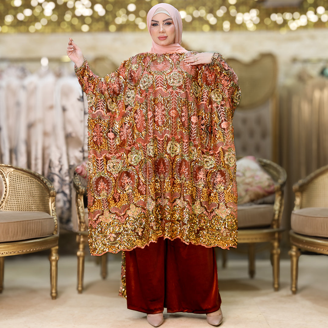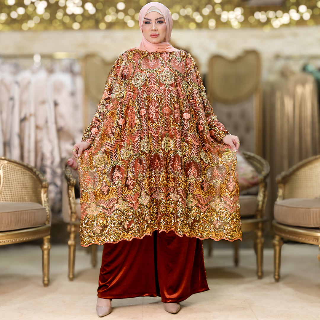 two-piece soirée suit is made from organza fabric,with a French velvet lining