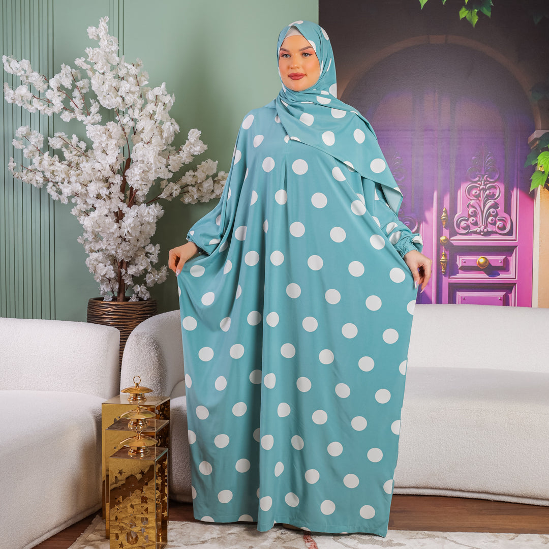 Practical Soft prayer dress- polka dot with headscarf
