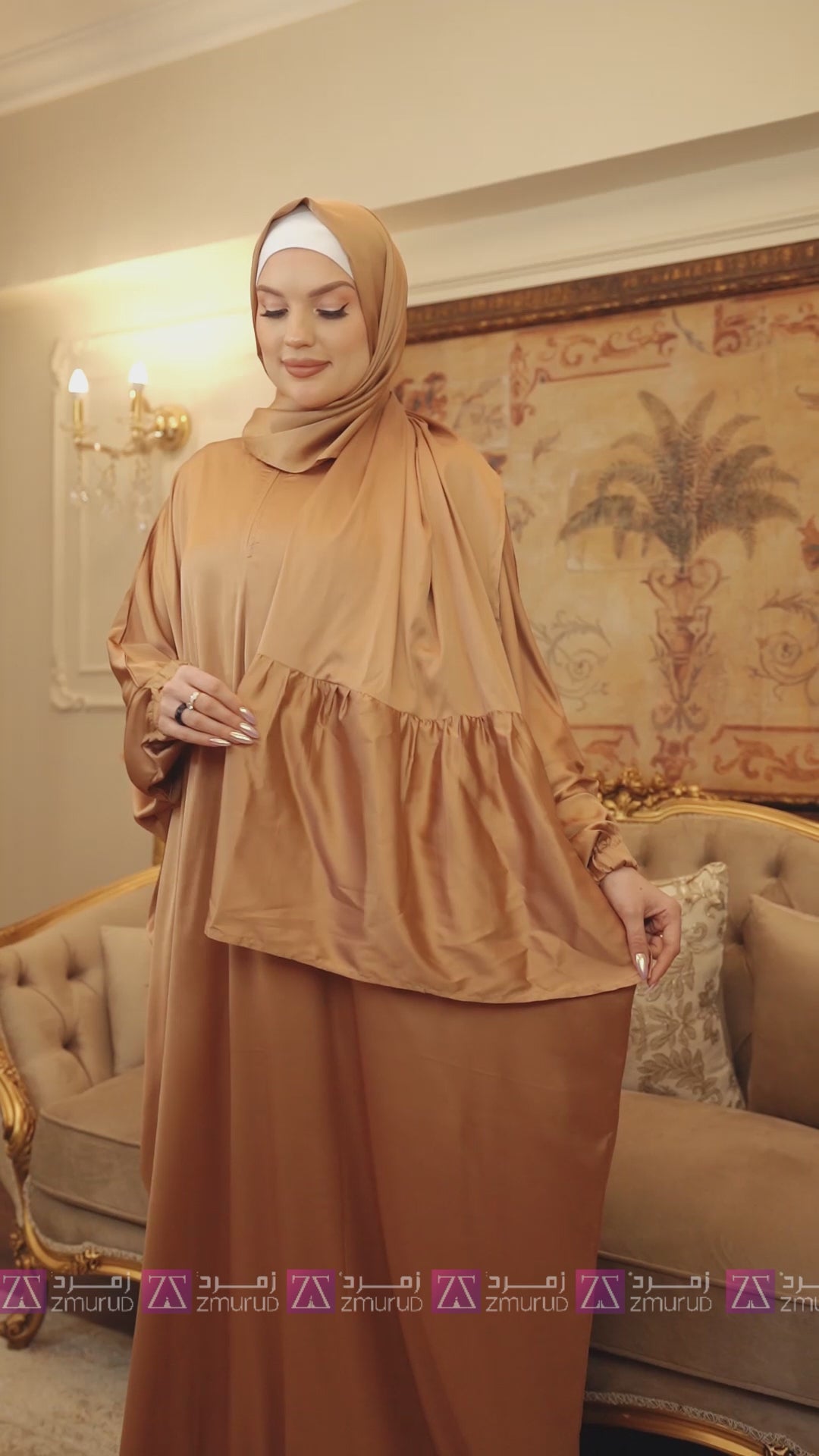 Armani - Practical plain silky satin prayer dress with headscarf