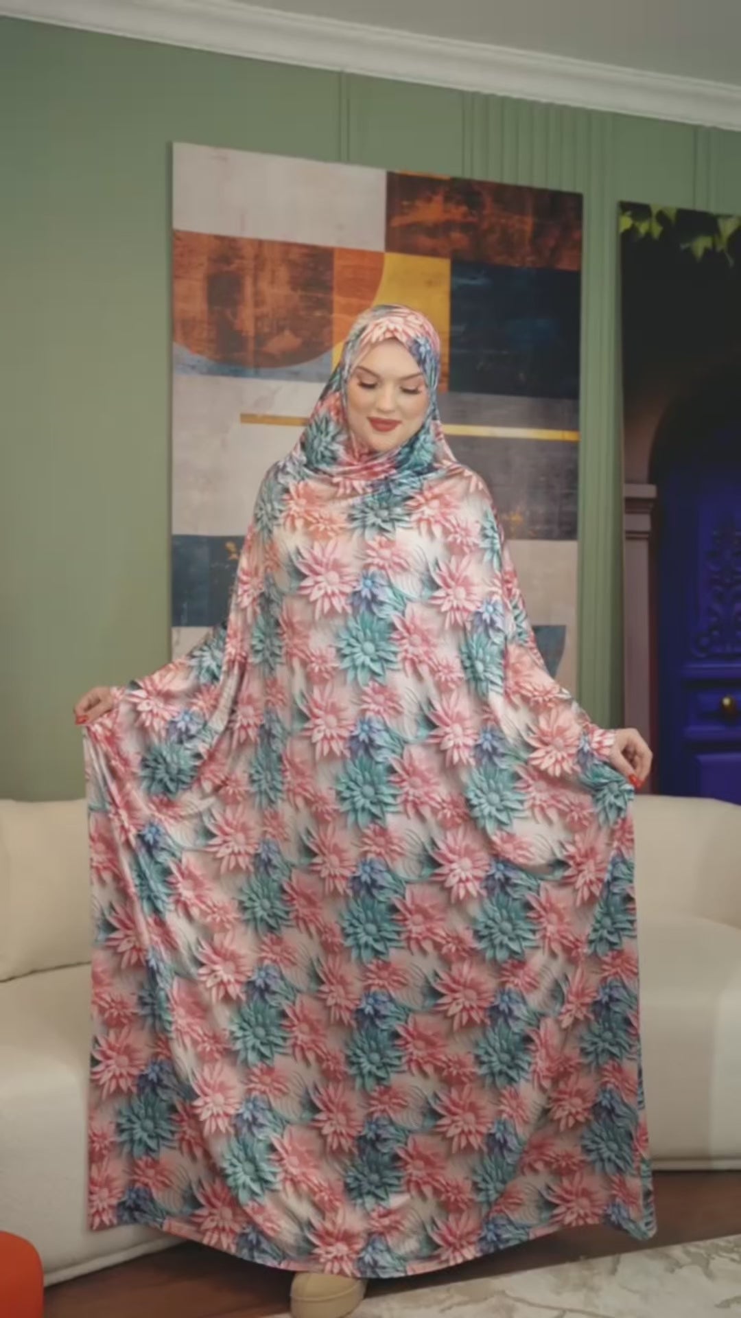 Practical Jersey prayer dress (Isdal)(digital print our own designs) Free Size fits 70kg to 100kg With a headscarf