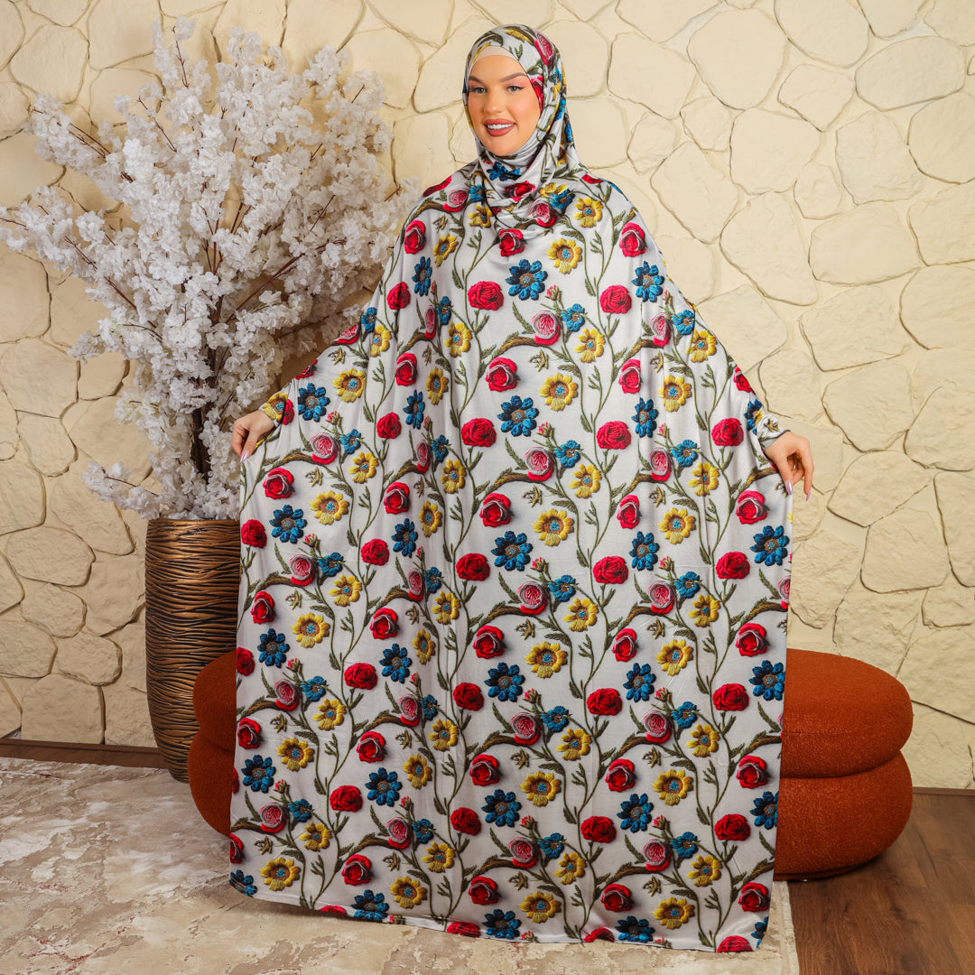 Practical Bahraini prayer dress (Isdal)Soft Cotton (synthetic cotton), free Size, fits 70kg to 100kg With a headscarf