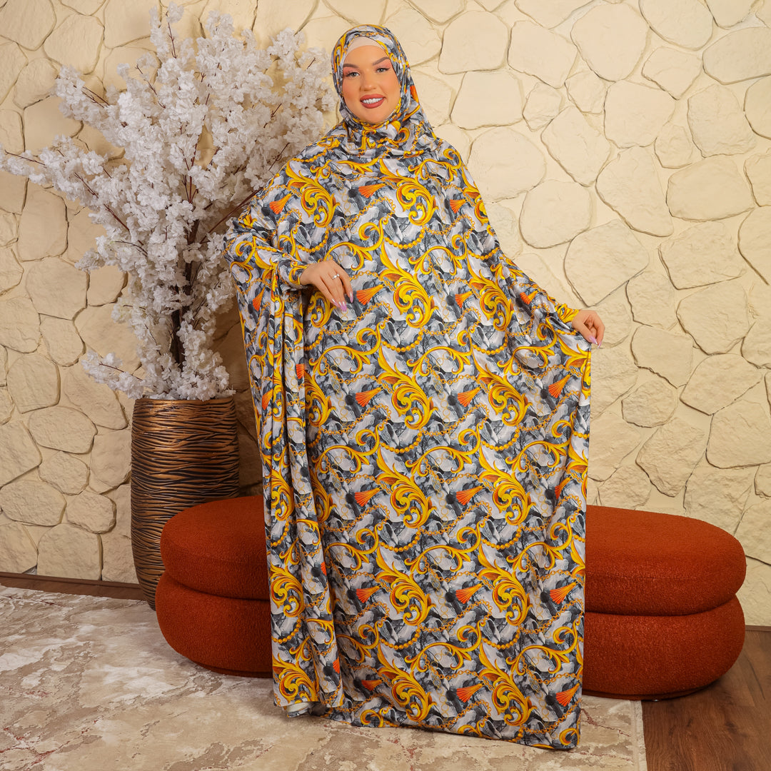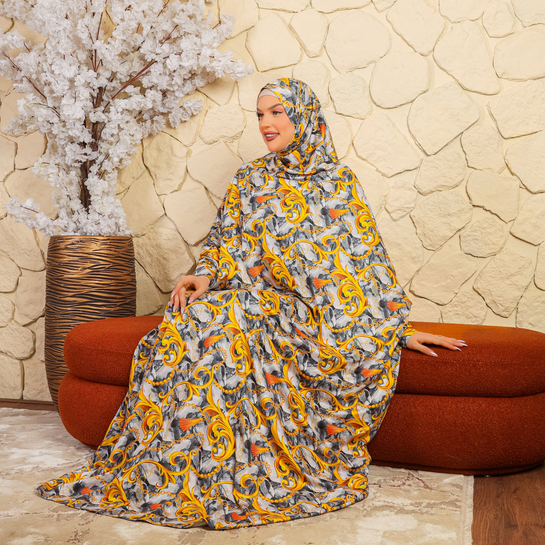 Practical  Bahraini prayer dress (Isdal)Soft Cotton (synthetic cotton), free Size, fits 70kg to 100kg With a headscarf
