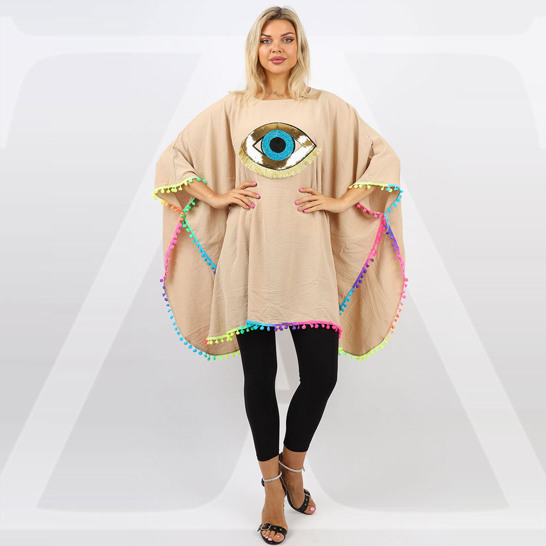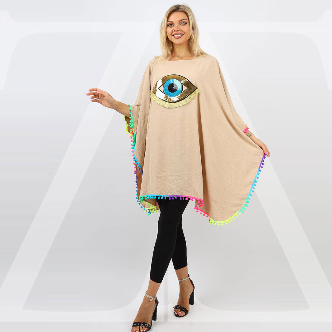 Crepe Poncho - Embroidered