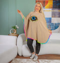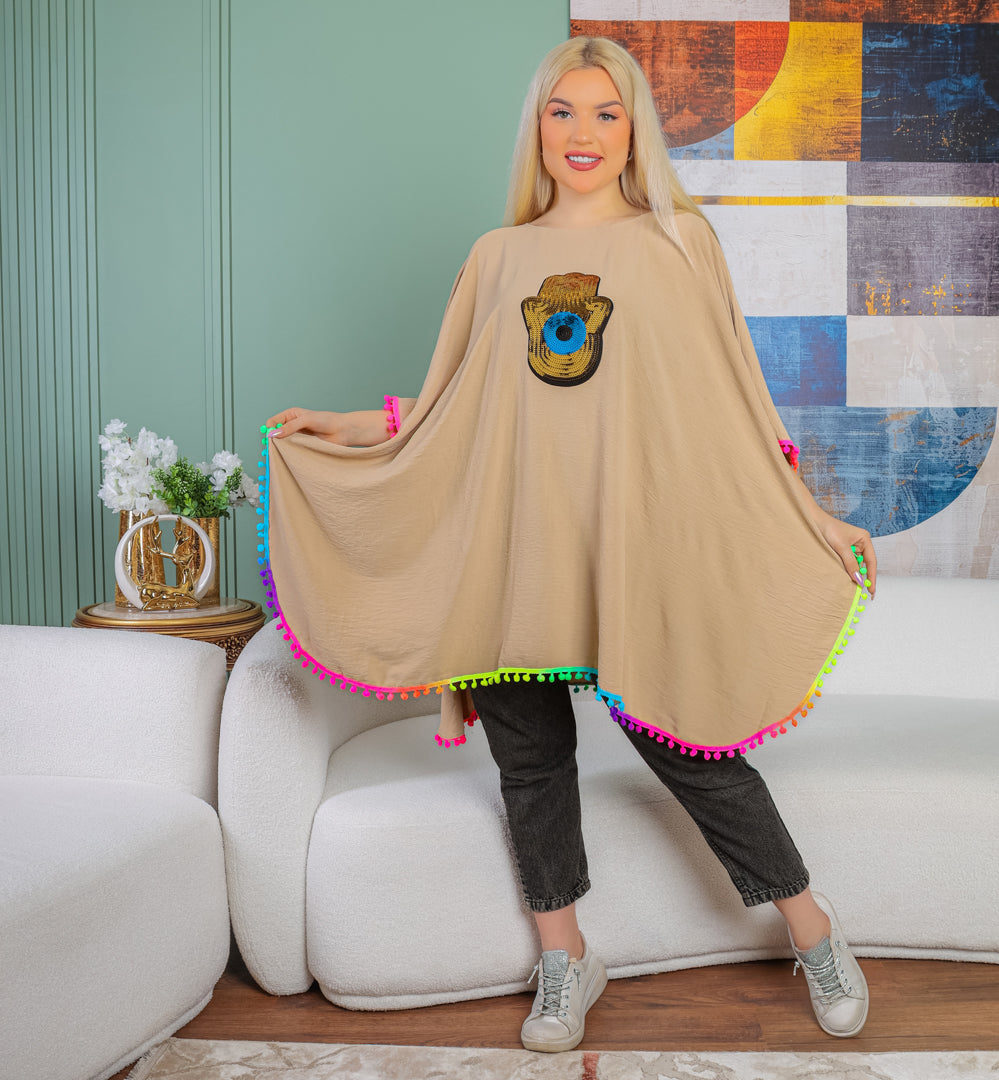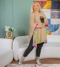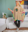Crepe Poncho Embroidered , free size, fits 70kg to 130kg