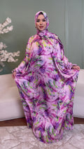 Practical Silky Satin prayer dress (Isdal) (digital print our own designs) Free Size fits 70kg to 130kg With a connected veil