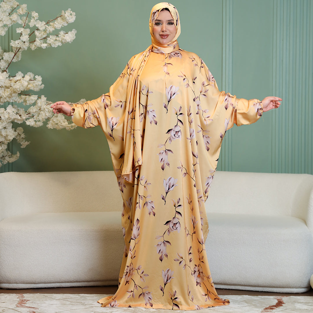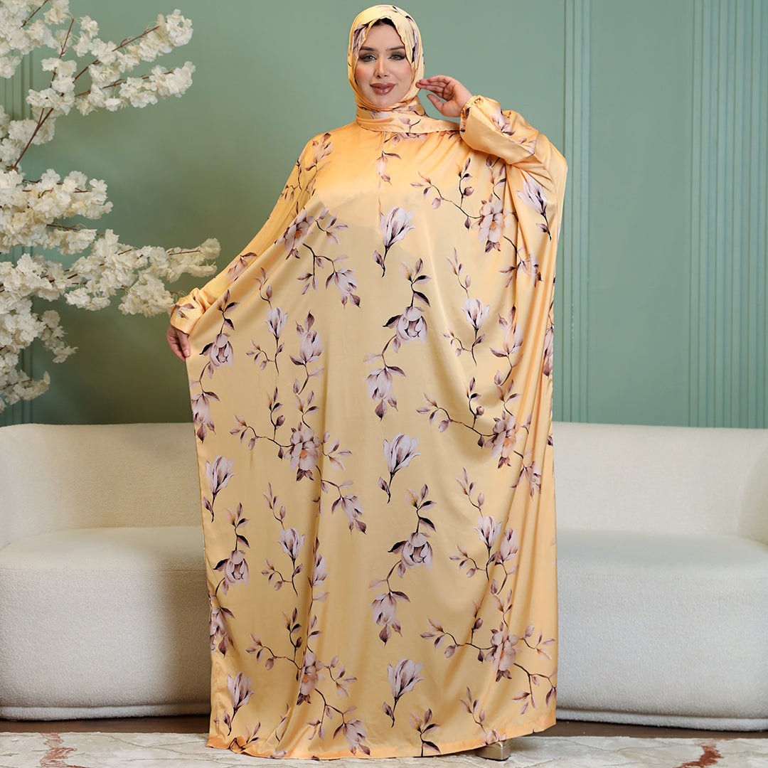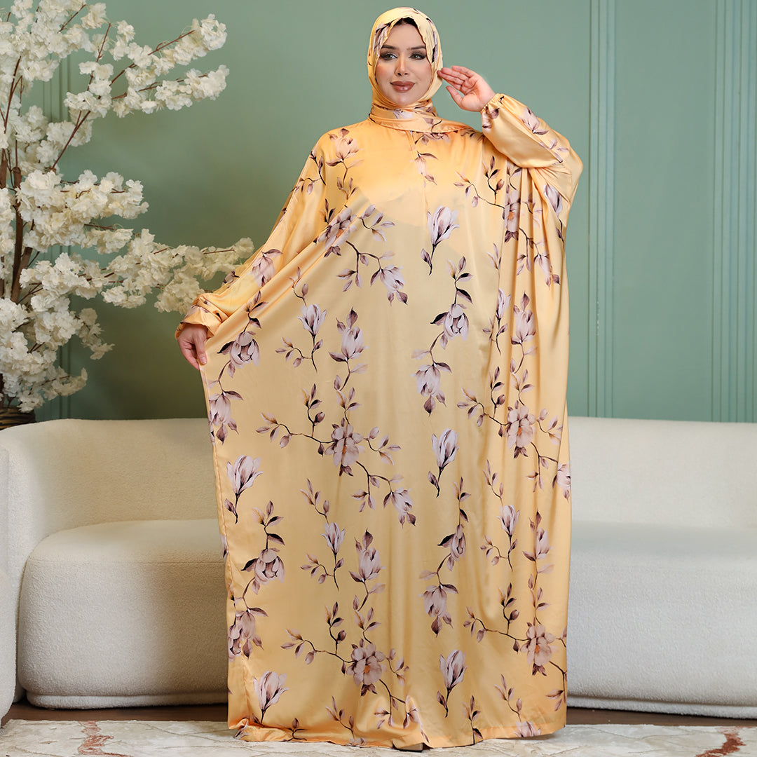 Practical Silky Satin prayer dress (Isdal) (digital print our own designs) Free Size fits 70kg to 130kg With a connected veil