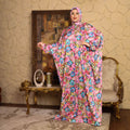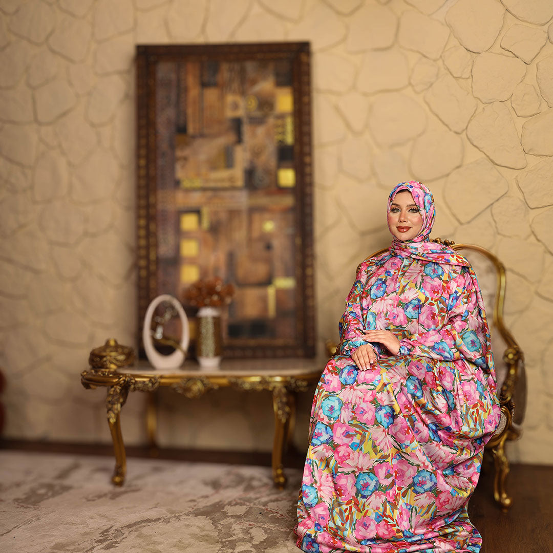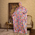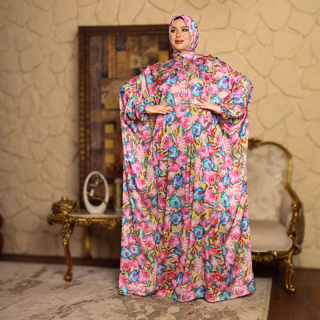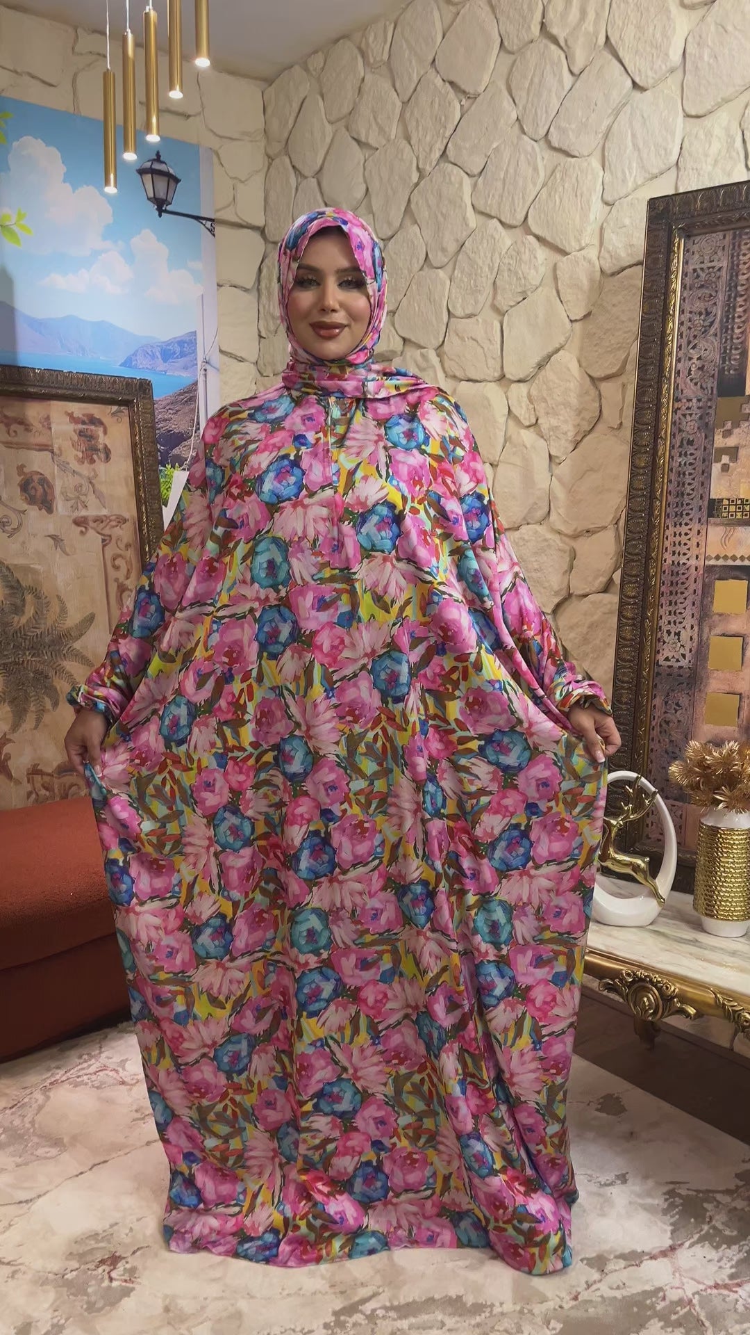 Practical Silky Satin prayer dress (Isdal) (digital print our own designs) Free Size fits 70kg to 130kg With a connected veil