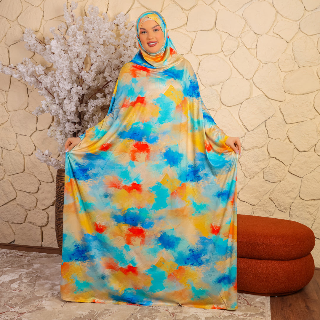 Practical Bahraini prayer dress (Isdal)Soft Cotton (synthetic cotton), free Size, fits 70kg to 100kg With a headscarf