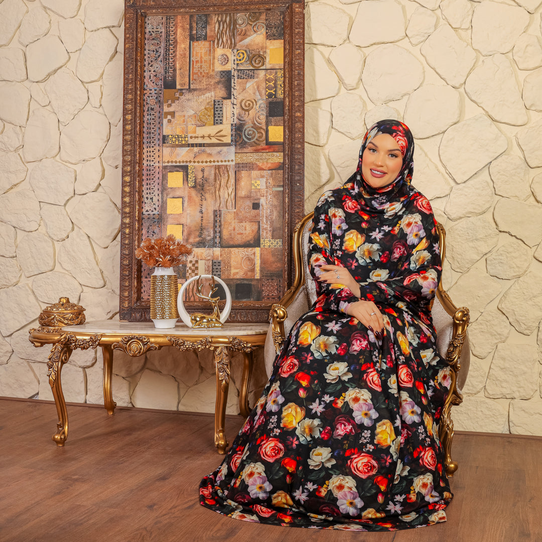Practical Bahraini prayer dress with headscarf- printed