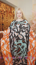 چلابية حرير ستان طباعة ديجيتال من تصميماتنا الخاصة فري سايز تناسب من ٧٠ ك إلى ١٣٠ك