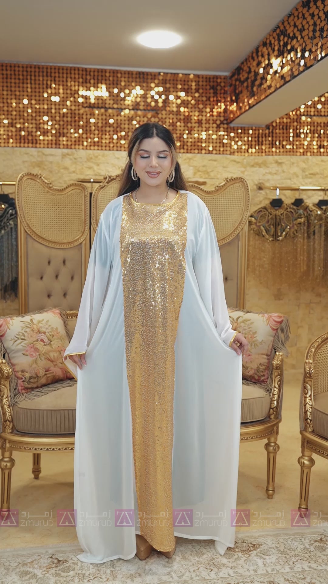 جلابية كويتية، شيفون ناعم شفاف بدون بطانة، تطريز وترتر. فري سايز يناسب من ٧٠ إلى ١٠٠ كجم.