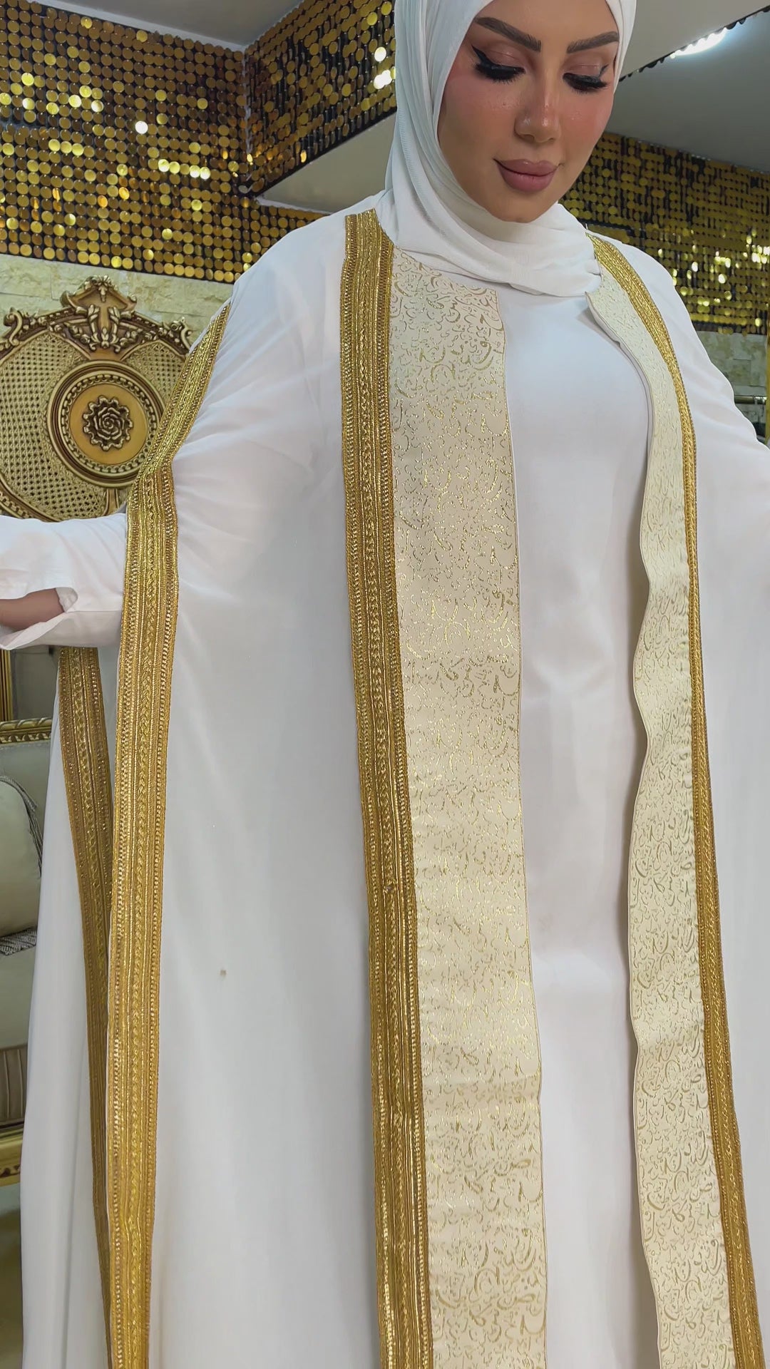 بيشت عربي من الشيفون الناعم مطرز و مزين بشرايط تطريز هندي و شرايط خط عربي