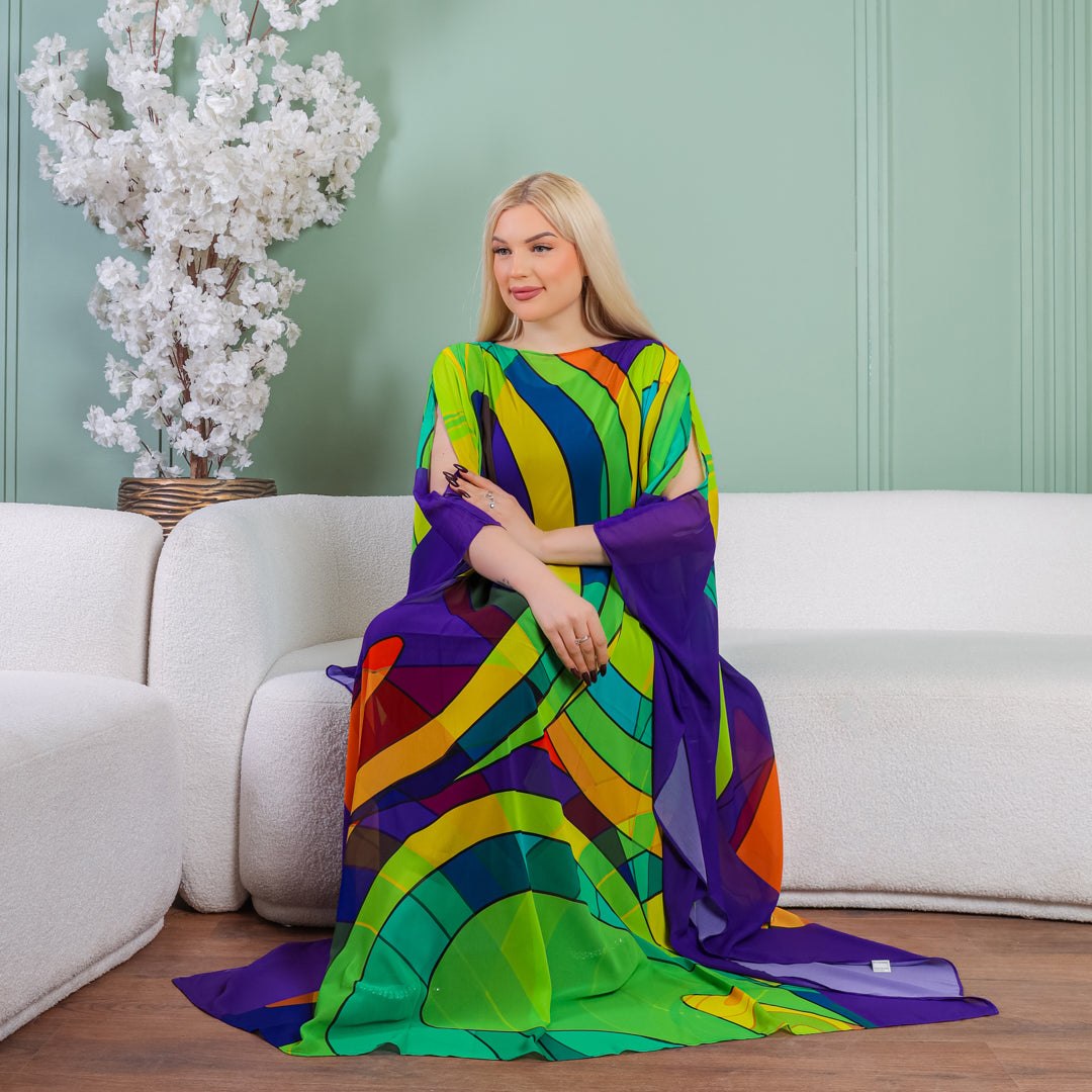 كاجوال كاش فراشة شيفون ناعم و خفيف بدون بطانة طباعة ديجيتال من تصميماتنا الخاصة فري سايز يناسب ٧٠ك إلى ١٣٠ك و الطول منالكتف ١٣٥سم