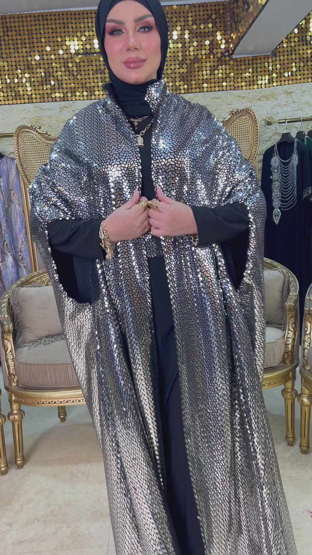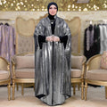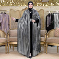 قفطان سواريه من خامة كريستال شايني + حزام لون القفطان، بدون بيزك , فري سايز يناسب ٧٠ك إلى ١٢٠ك