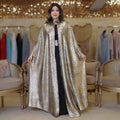 قفطان سواريه من خامة كريستال شايني + حزام لون القفطان، بدون بيزك , فري سايز يناسب ٧٠ك إلى ١٢٠ك