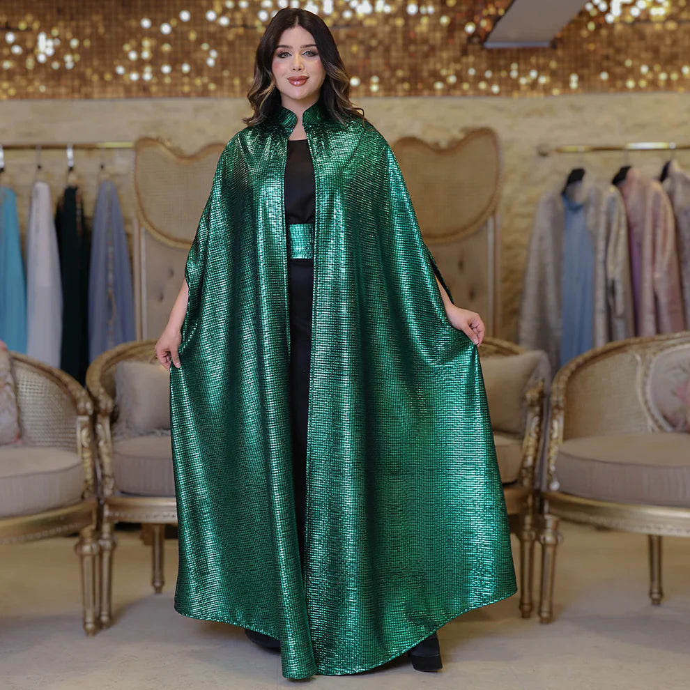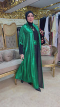 قفطان سواريه من خامة كريستال شايني + حزام لون القفطان، بدون بيزك , فري سايز يناسب ٧٠ك إلى ١٢٠ك