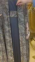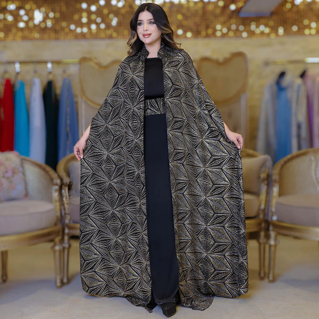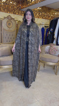 قفطان سواريه من خامة كريستال شايني + حزام لون القفطان، بدون بيزك , فري سايز يناسب ٧٠ك إلى ١٢٠ك