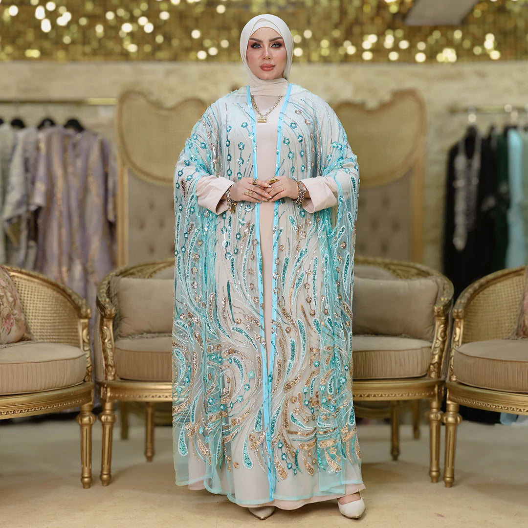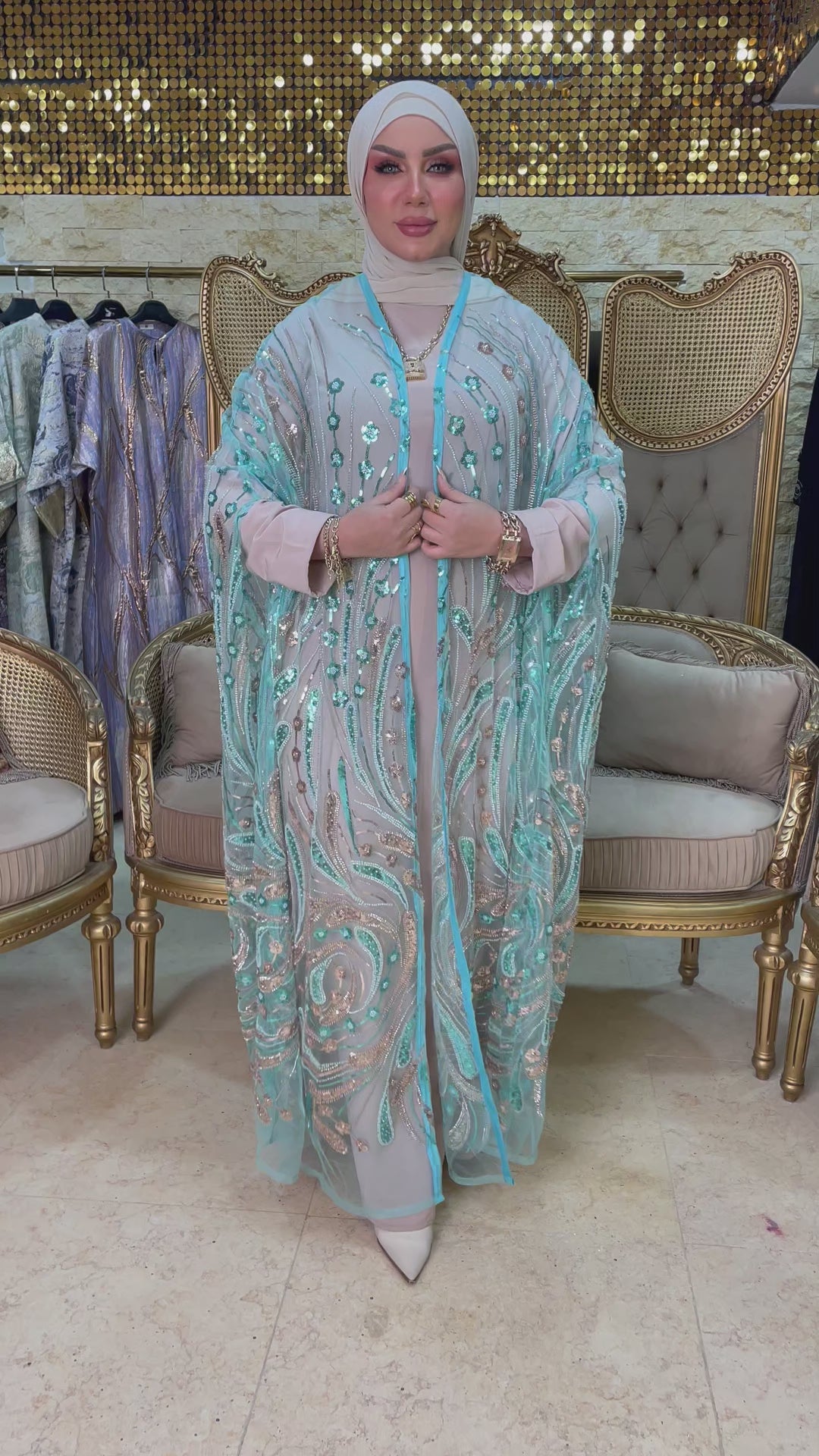قفطان كاب أورجانزا تطريز فري سايز يناسب ٧٠ك إلى ١٠٠ك
