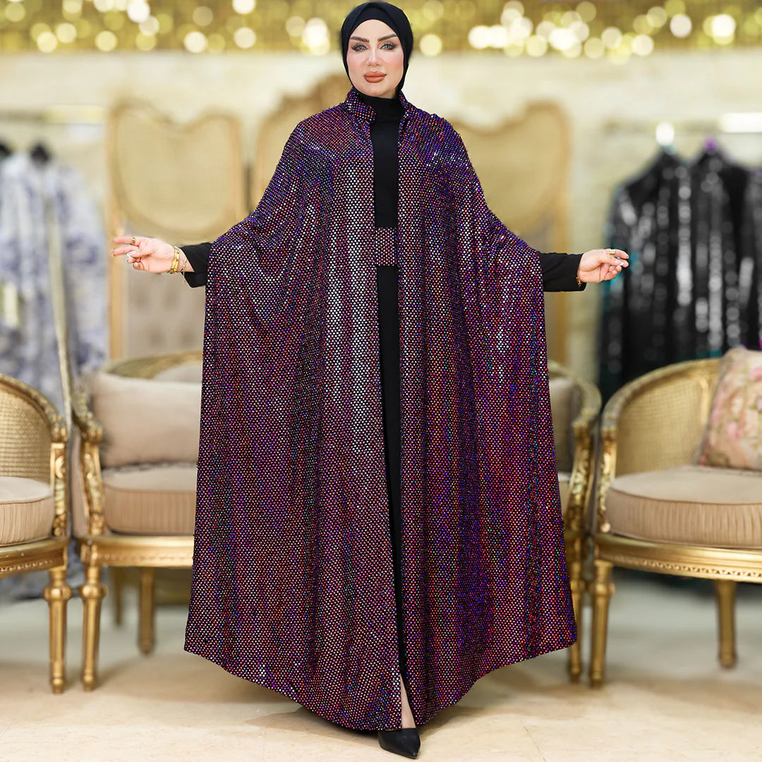 قفطان سواريه من خامة كريستال شايني + حزام لون القفطان، بدون بيزك , فري سايز يناسب ٧٠ك إلى ١٢٠ك