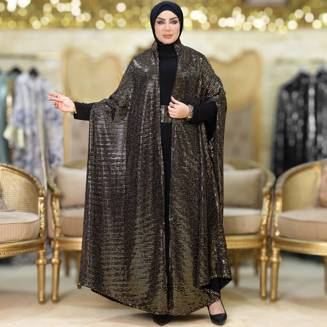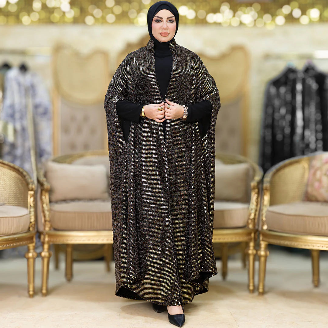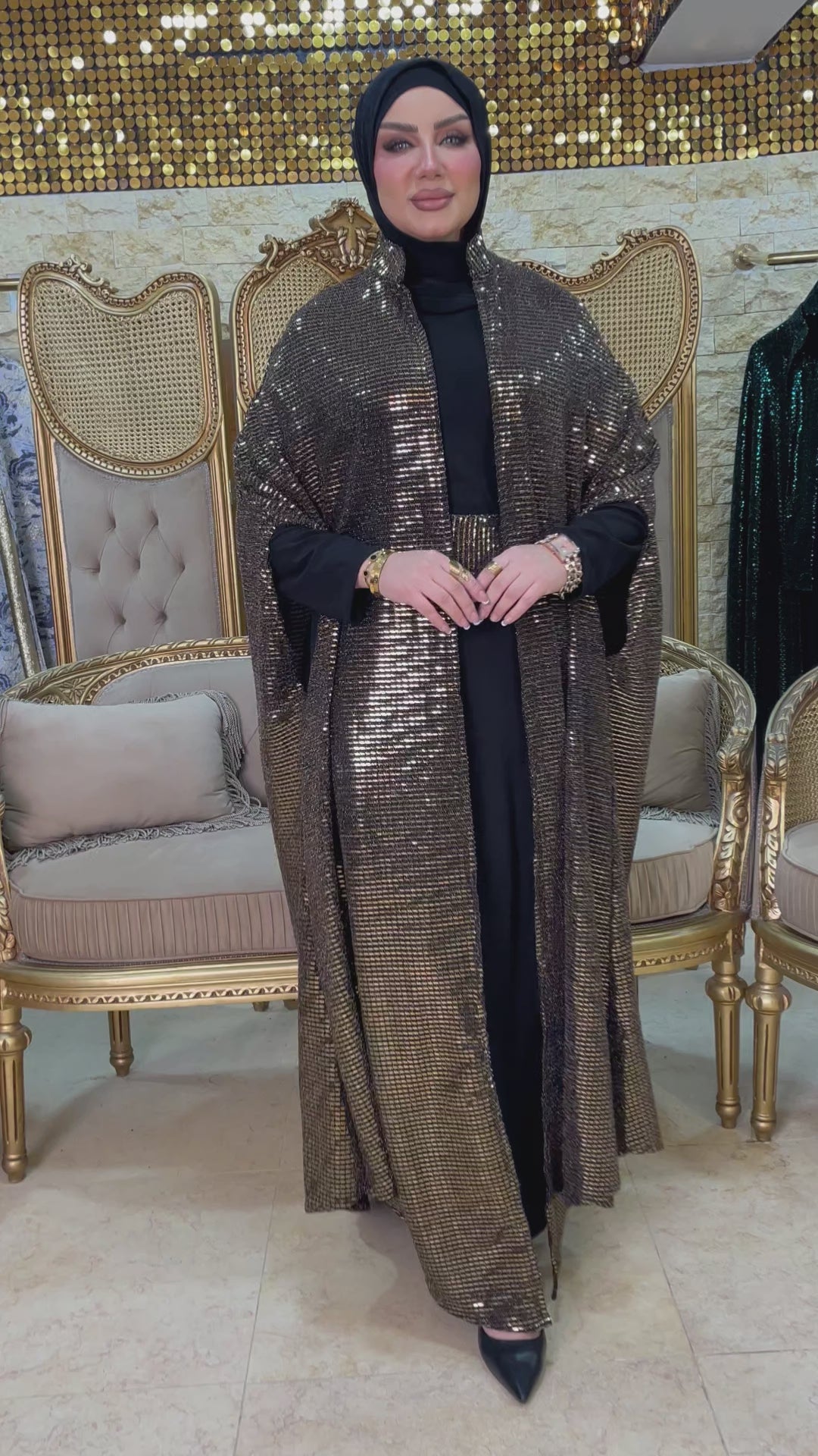 قفطان سواريه من خامة كريستال شايني + حزام لون القفطان، بدون بيزك , فري سايز يناسب ٧٠ك إلى ١٢٠ك
