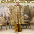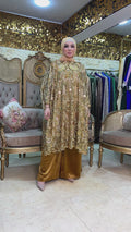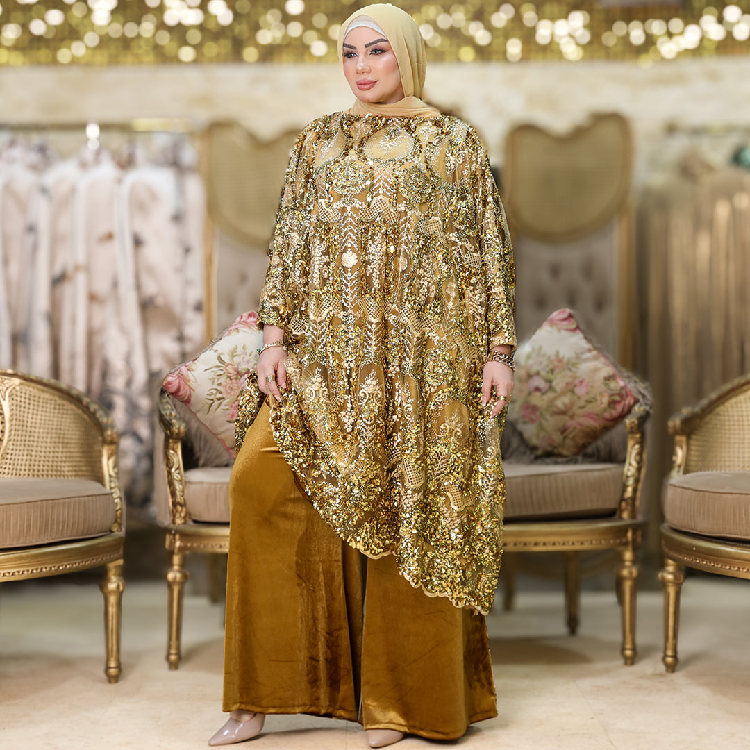 البنطلون شمواه بشريط تطريز أورجانزا من الجانب.