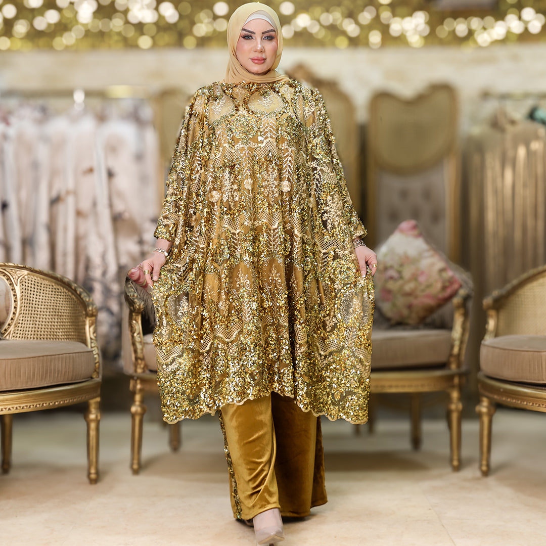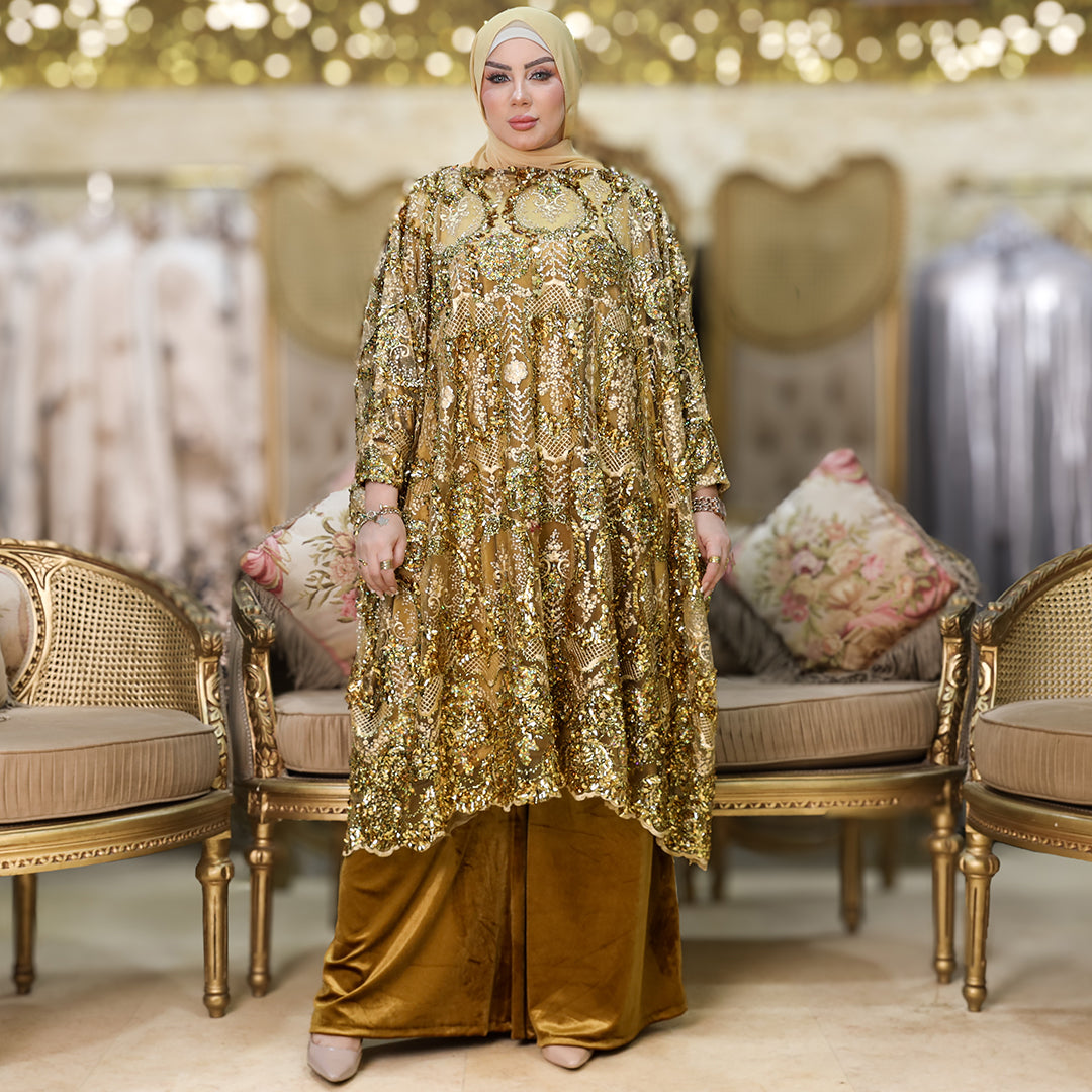 سوت قطعتين سواريه من خامة الأورجانزا ببطانة شمواه.