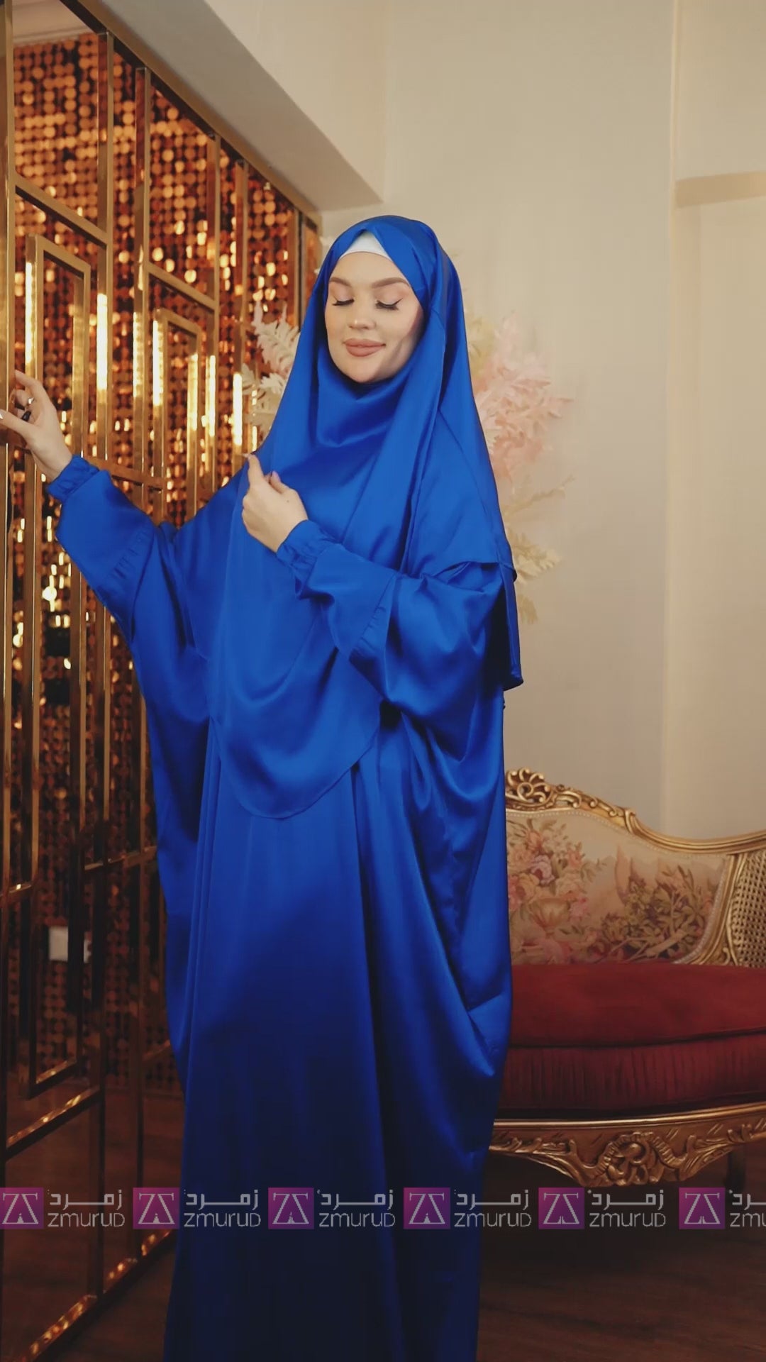 ثوب صلاة فرنساوي - حرير ستان ساده عملي مع غطاء الرأس