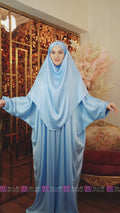 ثوب صلاة فرنساوي - حرير ستان  ساده عملي مع غطاء الرأس