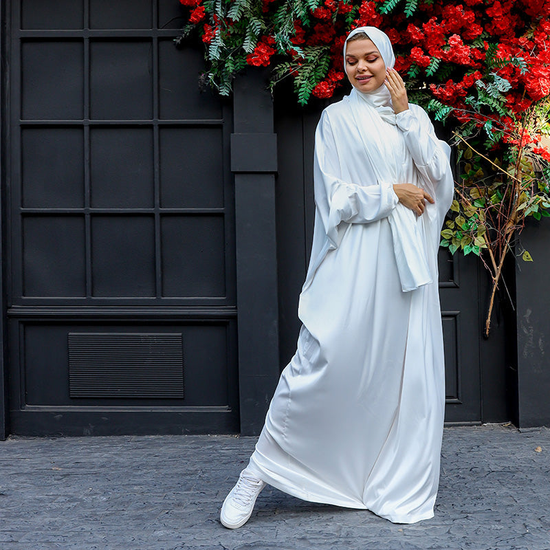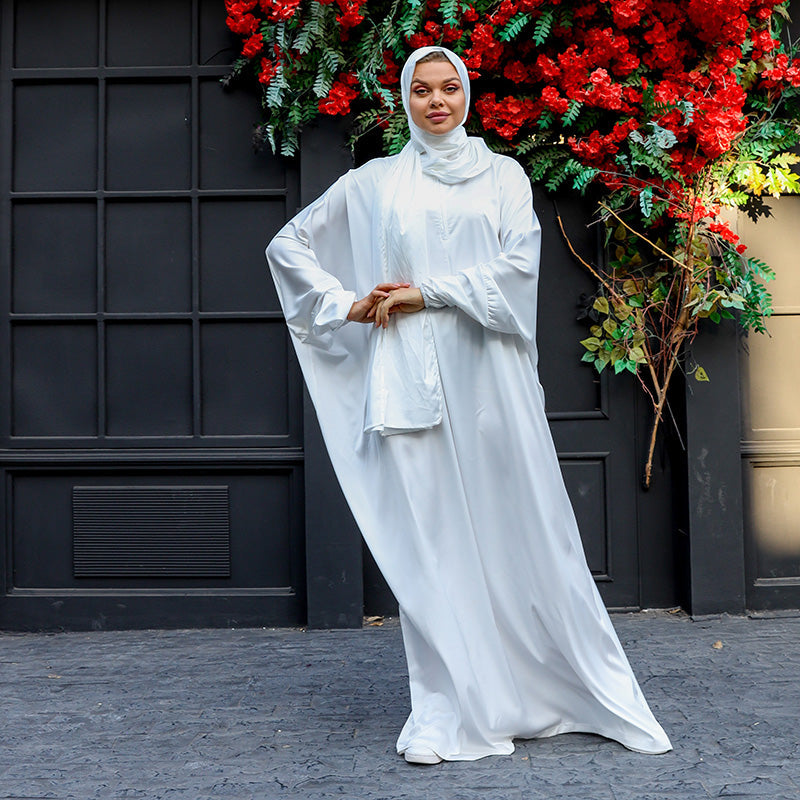 أرماني - ثوب صلاة حرير ستان ساده عملي مع غطاء الرأس