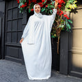 ثوب صلاة (إسدال)حرير ستان(أرماني) - سادة بطرحة طويلة عملي واسع و فضفاض فري سايز يناسب ٧٠ك إلى ١٣٠ك.
