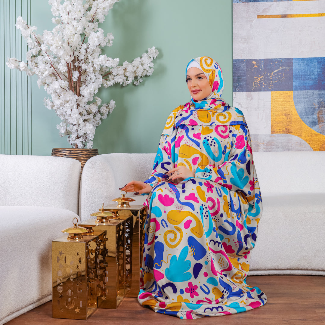 ثوب صلاة (إسدال)حرير ستان مطبوع من تصميماتنا الخاصة