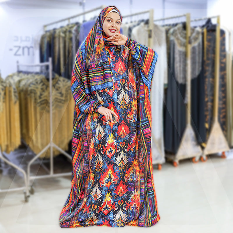 ثوب صلاة (إسدال) حرير ستان عملي مطبوع من تصميماتنا الخاصة