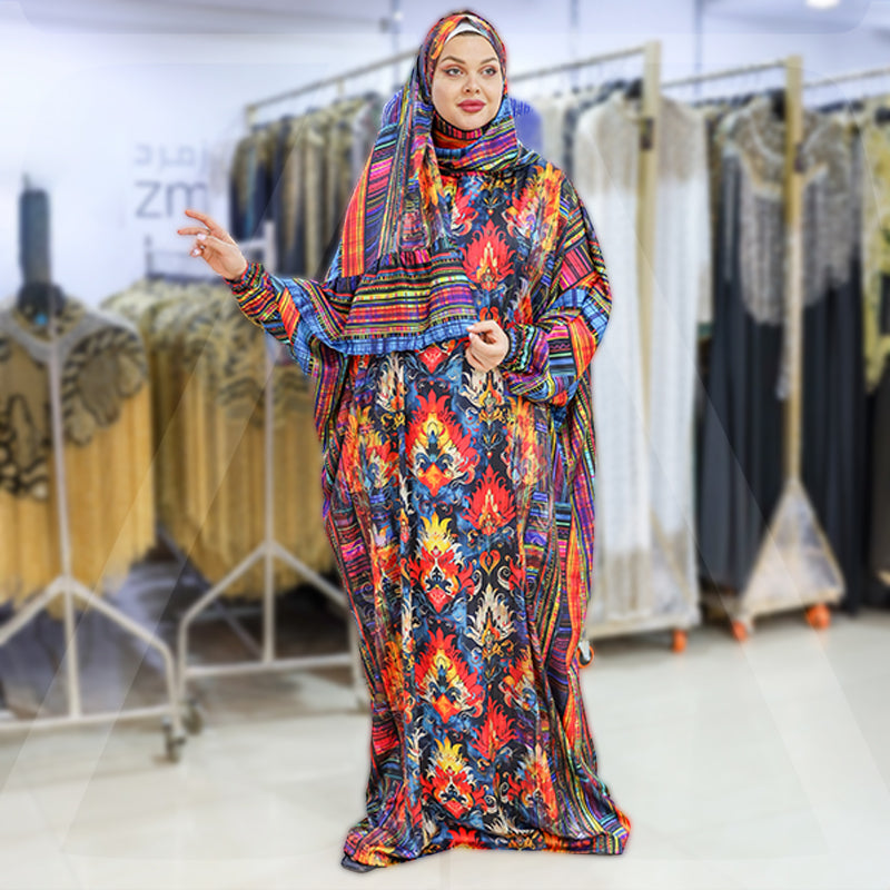 ثوب صلاة حرير ستان مطبوع عملي مع غطاء الرأس