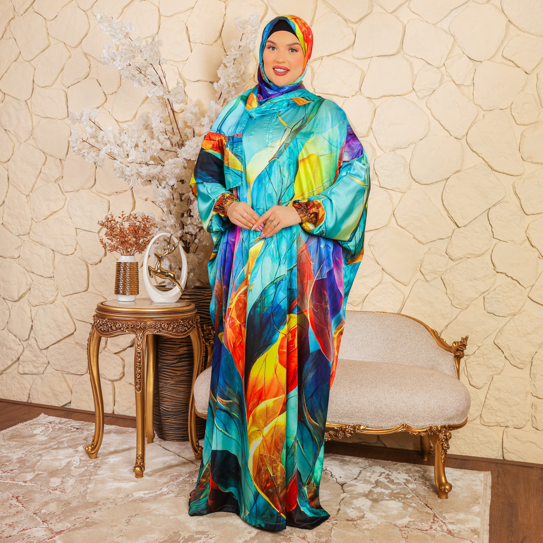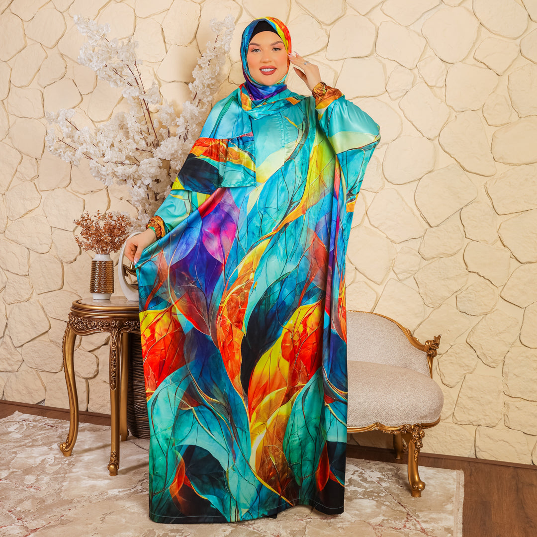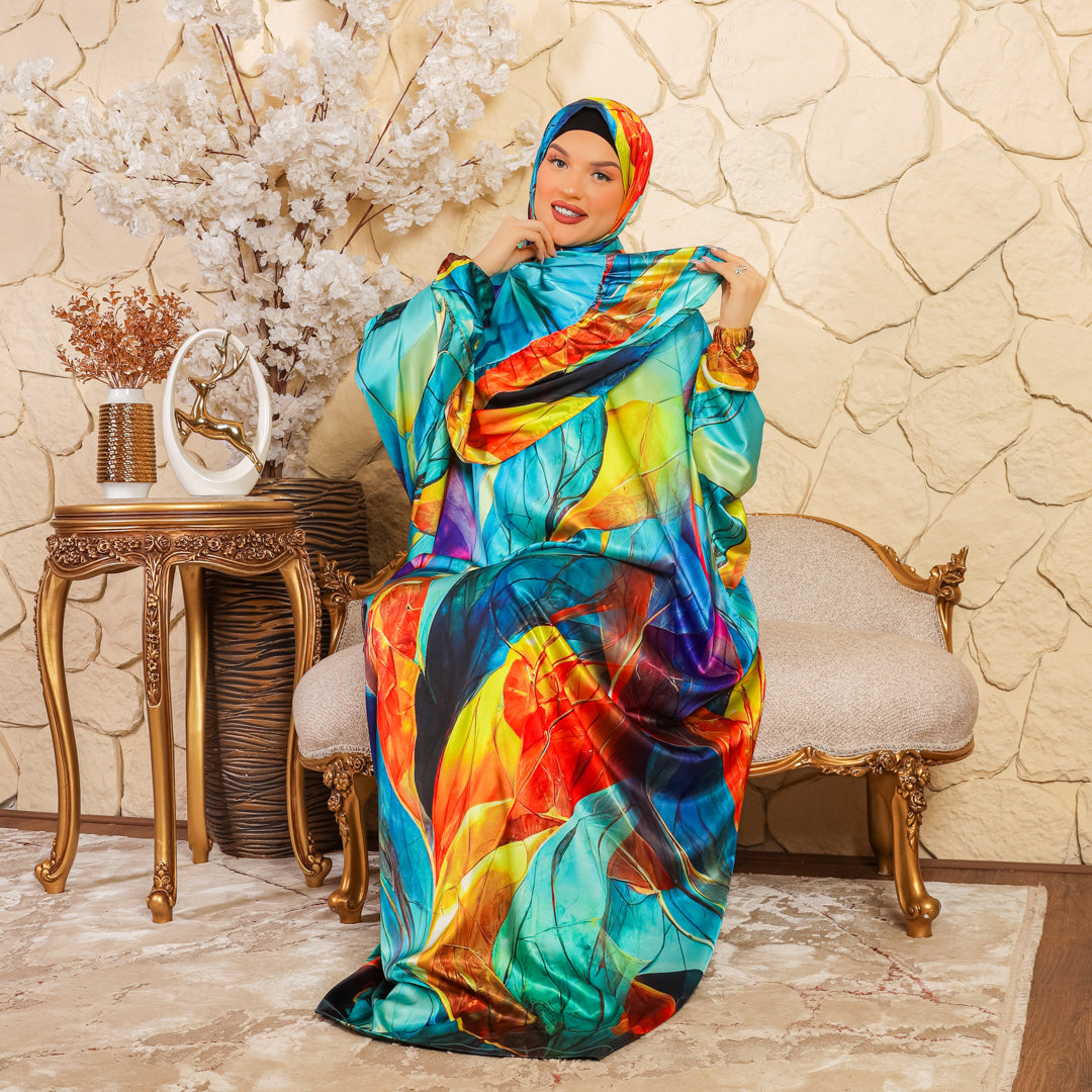 ثوب صلاة (إسدال) حرير ستان عملي مطبوع من تصميماتنا الخاصة