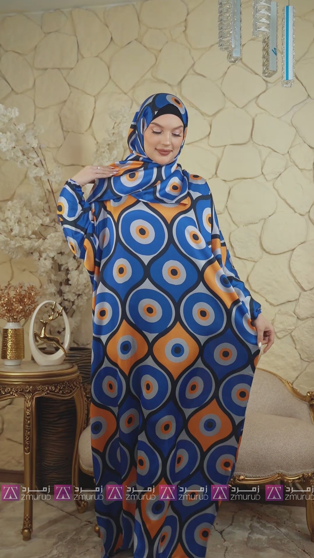 ثوب صلاة (إسدال) حرير ستان عملي مطبوع من تصميماتنا الخاصة
