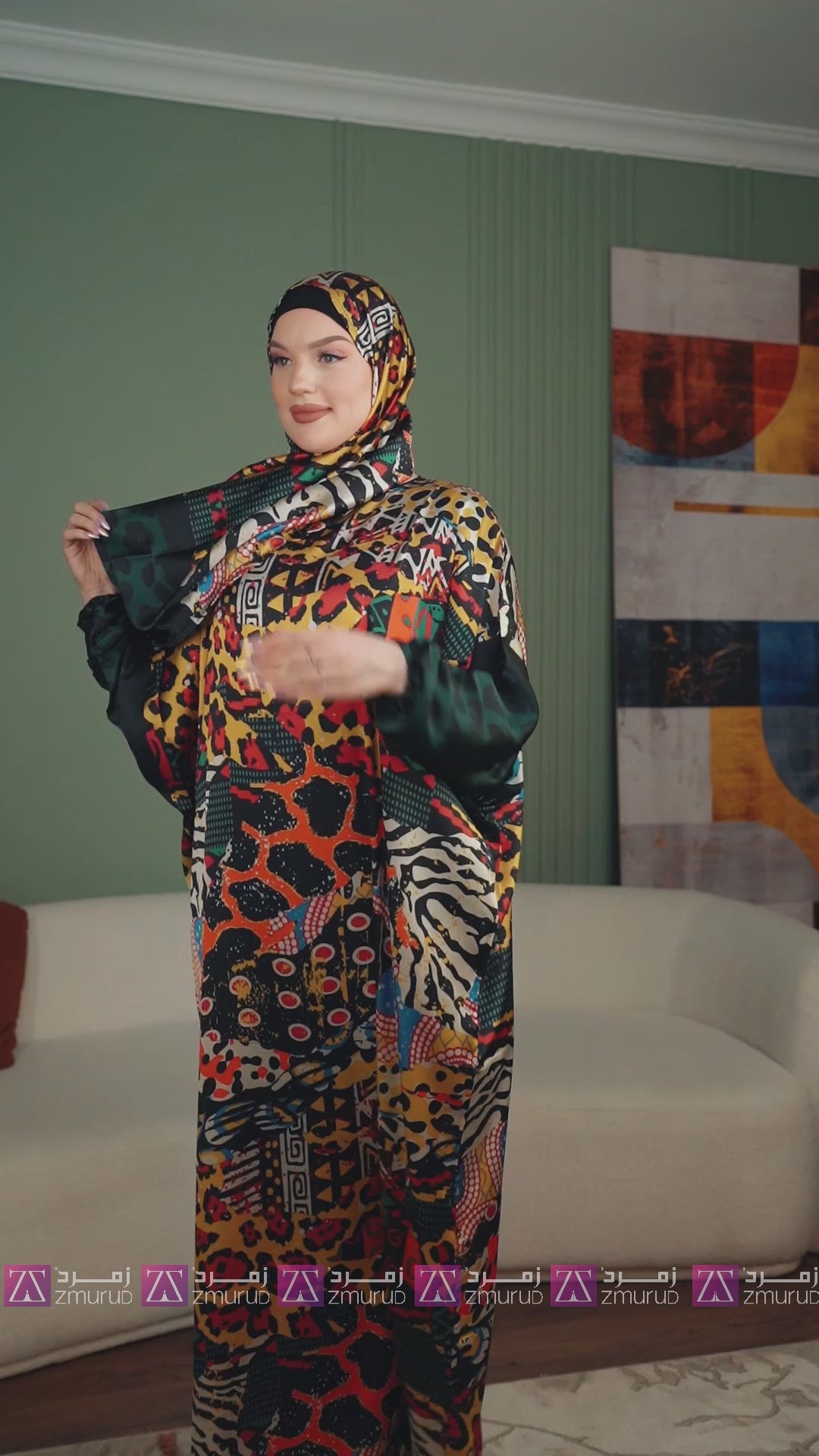 ثوب صلاة (إسدال) حرير ستان عملي مطبوع من تصميماتنا الخاصة