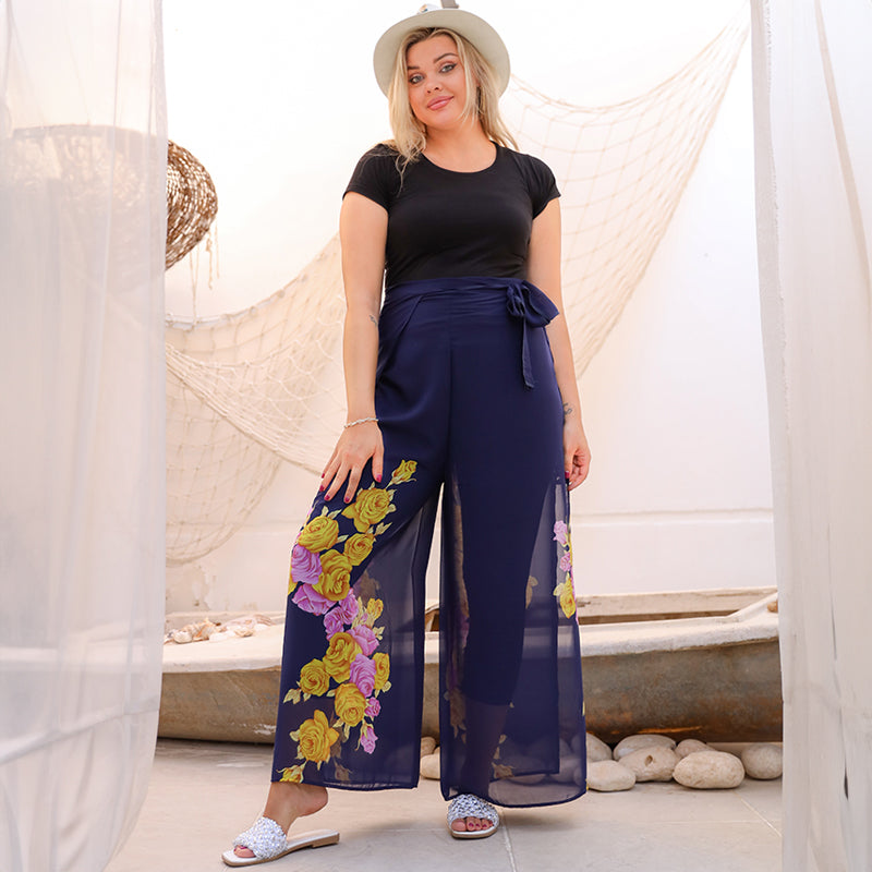 كاش مايوه شيفون بنطلون برباط فري سايز يناسب ٧٠ك إلى ١٠٠ك