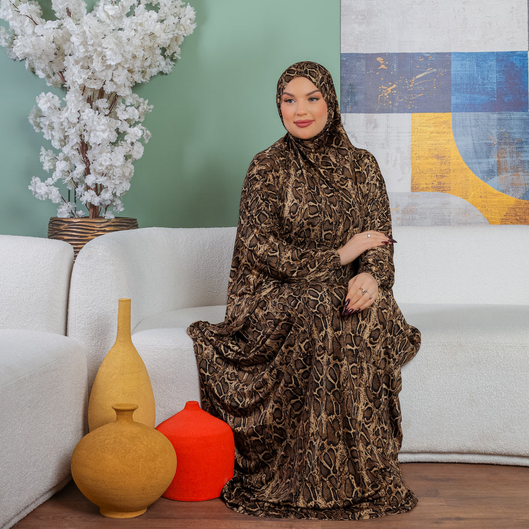 ثوب صلاة (إسدال) جيرسيه ليكرا مع غطاء الرأس فري سايز يناسب ٧٠ك إلى ١٠٠ك