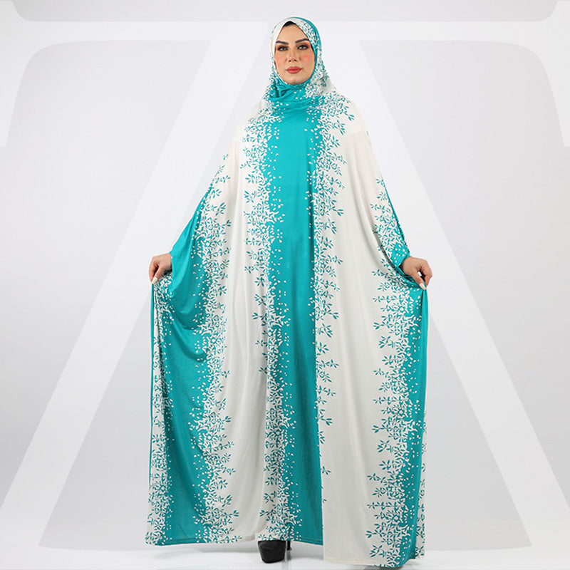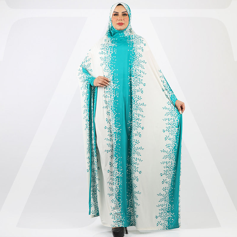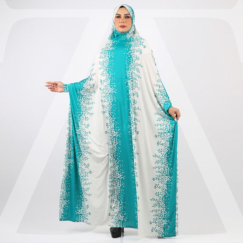 ثوب صلاة (إسدال) جيرسيه ليكرا مع غطاء الرأس فري سايز يناسب ٧٠ك إلى ١٠٠ك